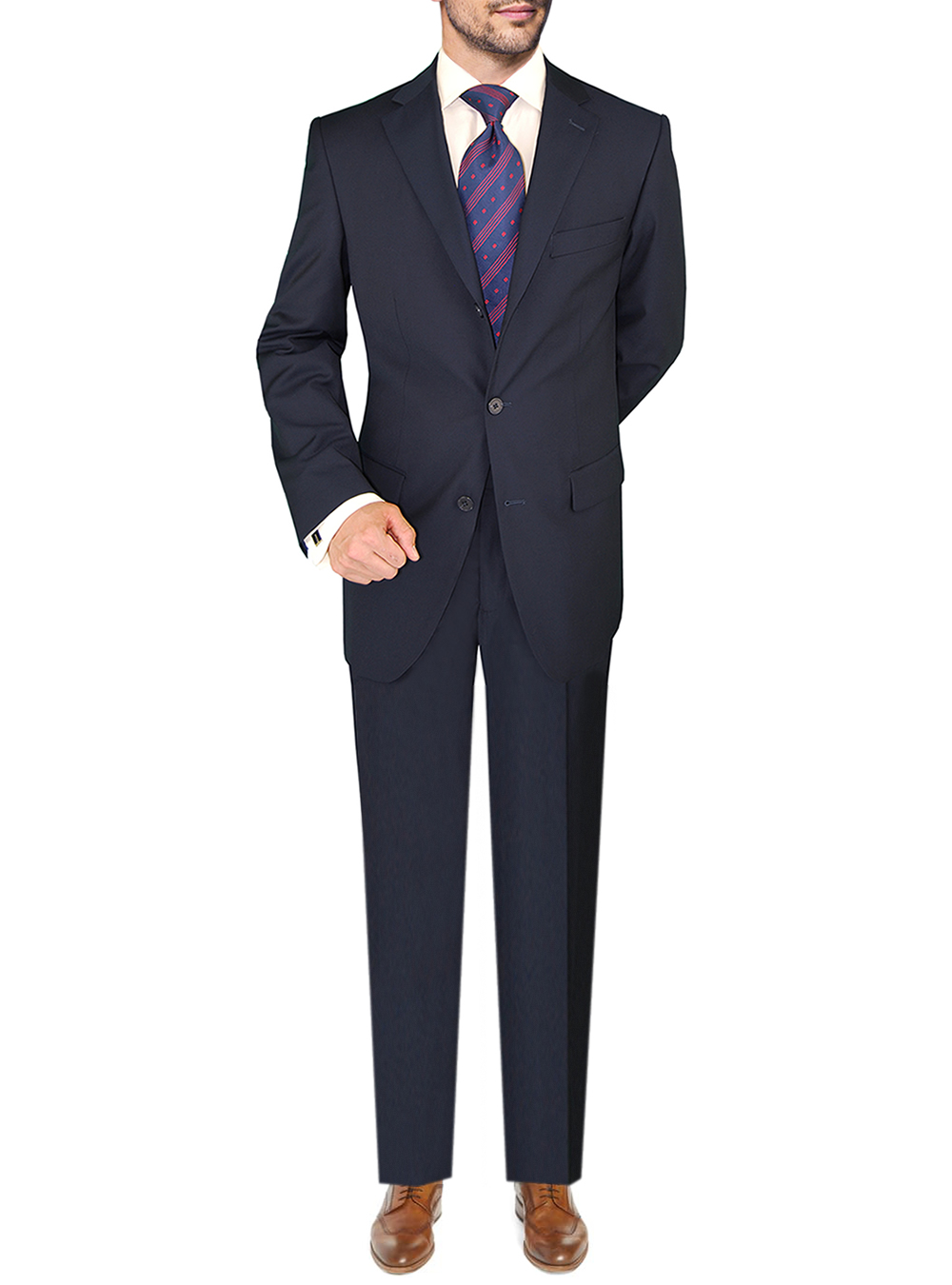 Giorgio Napoli Men's 3 Button Classic Modern Business Fit Suit. JACKET: Three button single breasted jacket front, dual side vents, notched lapel, full lining matching the color of the suit, 3 exterior pockets - 2 with flaps. The suit comes with 4 button vented sleeves. PANTS: Single pleated dress pants lined to just below the knee. Pant leg length unhemmed. These pants come with a standard 6" drop in the waist (e.g. a US 40R jacket will come with 34" waist pants). The waist can be altered in or out up to 2 inches. This suit is factory packed with a hanger and all tags are in place. Fine tropical weight man made fabric T/R - 65% Poly 35% Viscose. Imported China. Dry clean only.