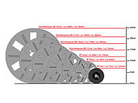 - Für Super-8- und Normal-8-Filmspulen (umschaltbar, Adapter 8/13 mm enthalten) bis 17,8 cm / 7"