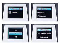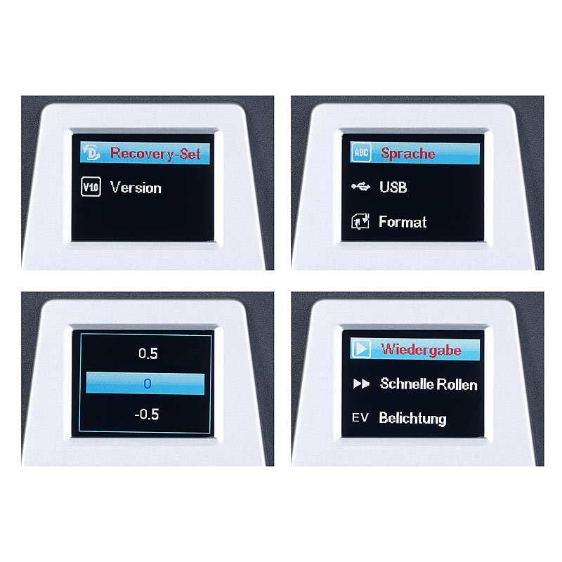 - Automatische Belichtung, manuelle Korrektur-Möglichkeit (-2,0 bis +2,0 EV), automatischer Weißabgleich