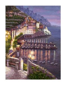 SAM PARK "Night View of Amalfi" Evening on harbor 20x15 Hand Signed# Giclee PCOA