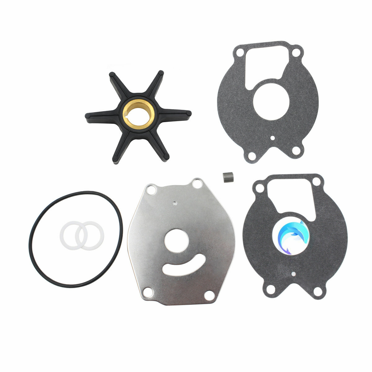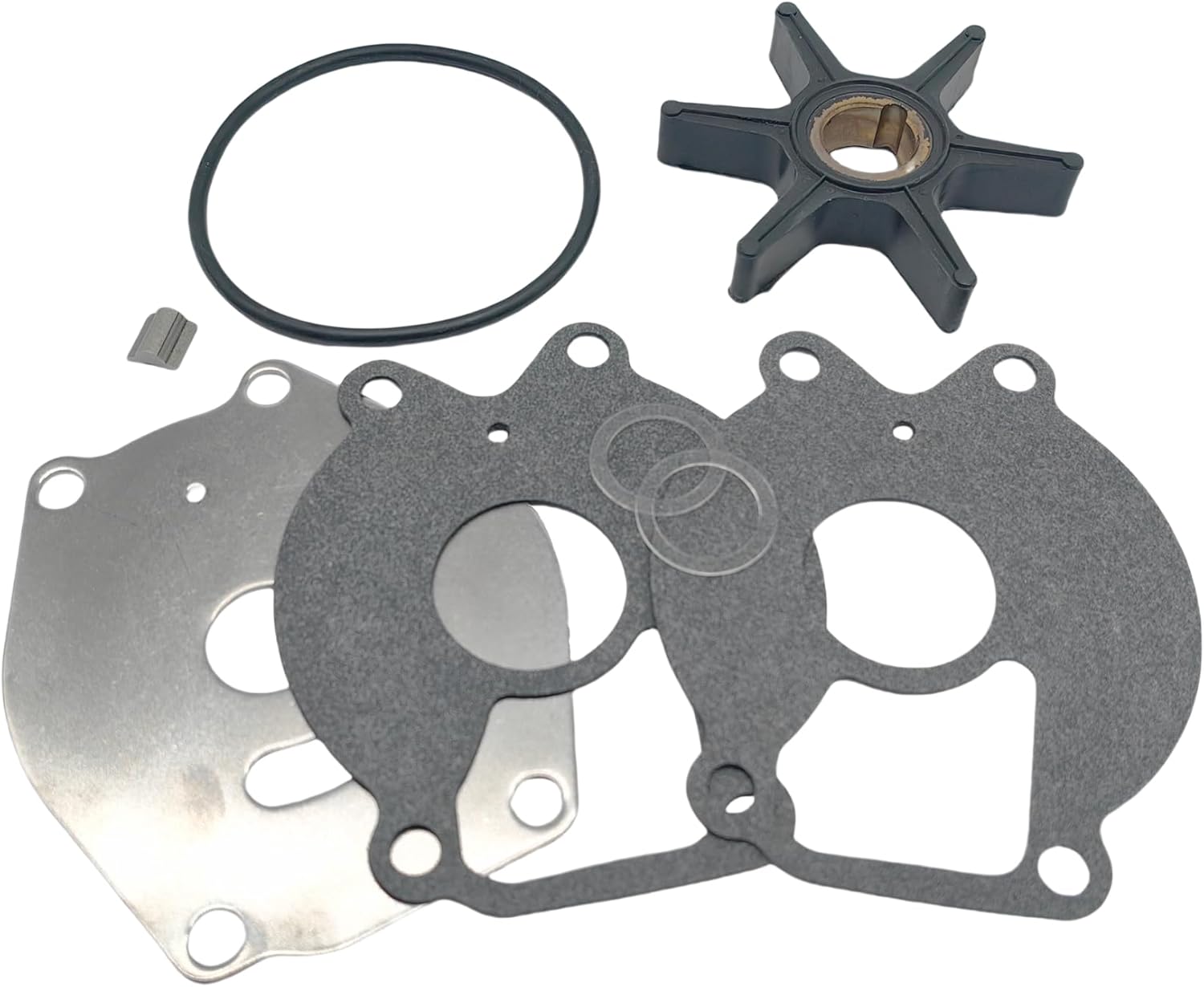 This listing is for a brand new water pump impeller kit for Mercury and Force outboards, containing the impeller, impeller plate, gaskets and o-rings.