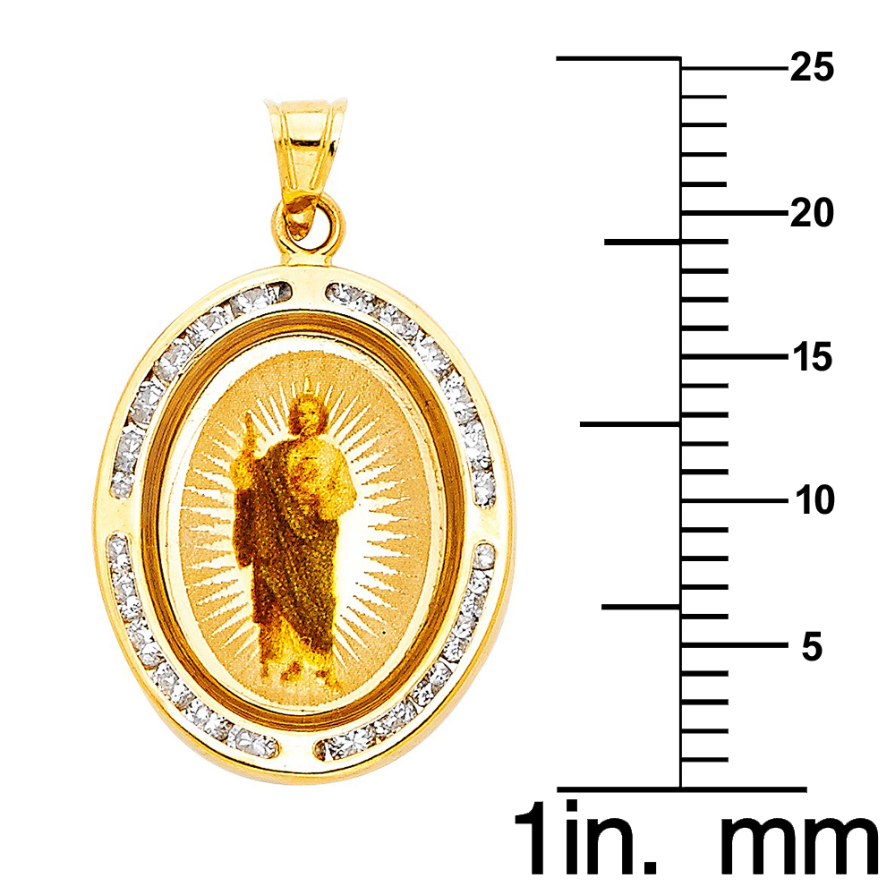 Genuine 14k Yellow Gold 0.78" Cubic Zirconia St Jude Thaddeus Medallion Pendant