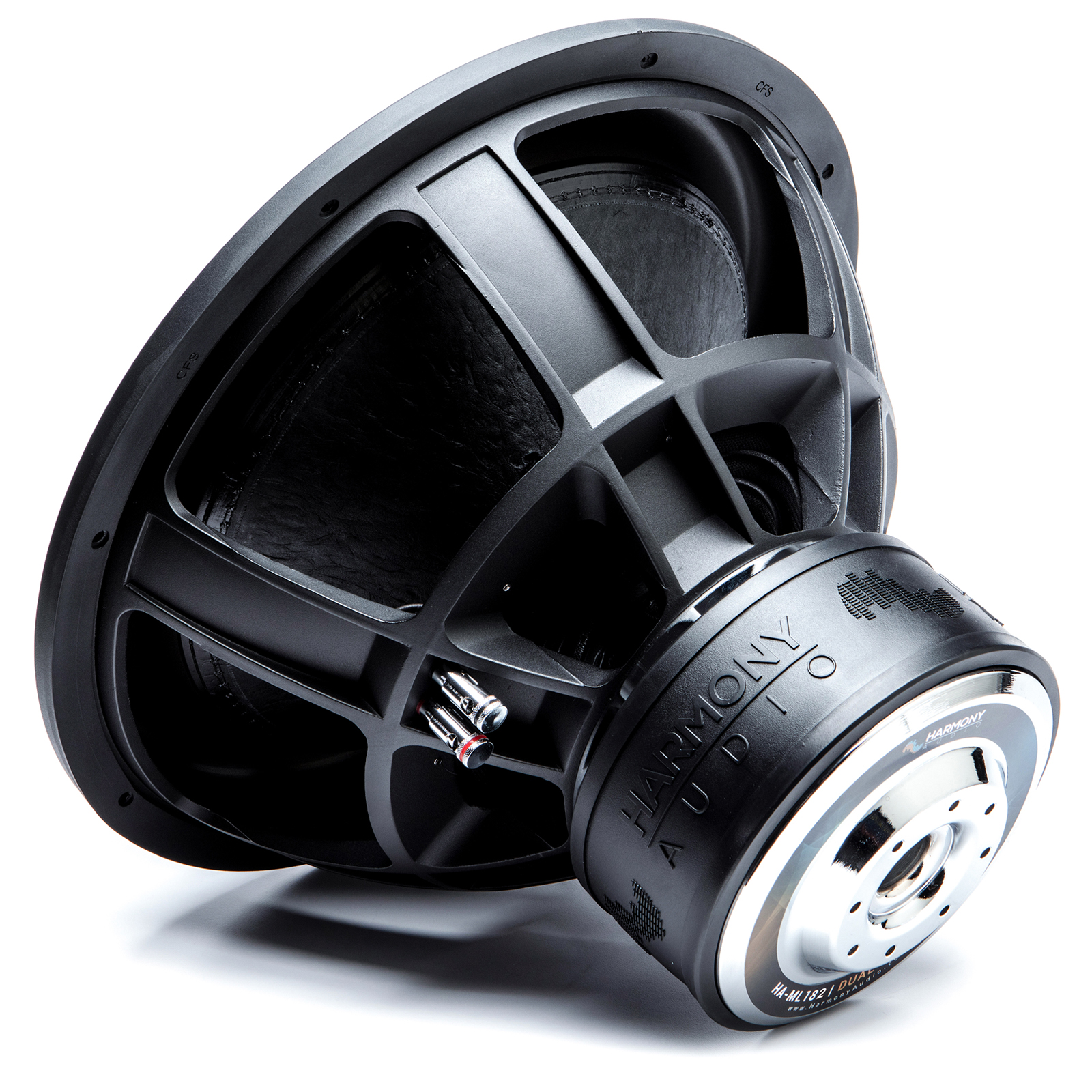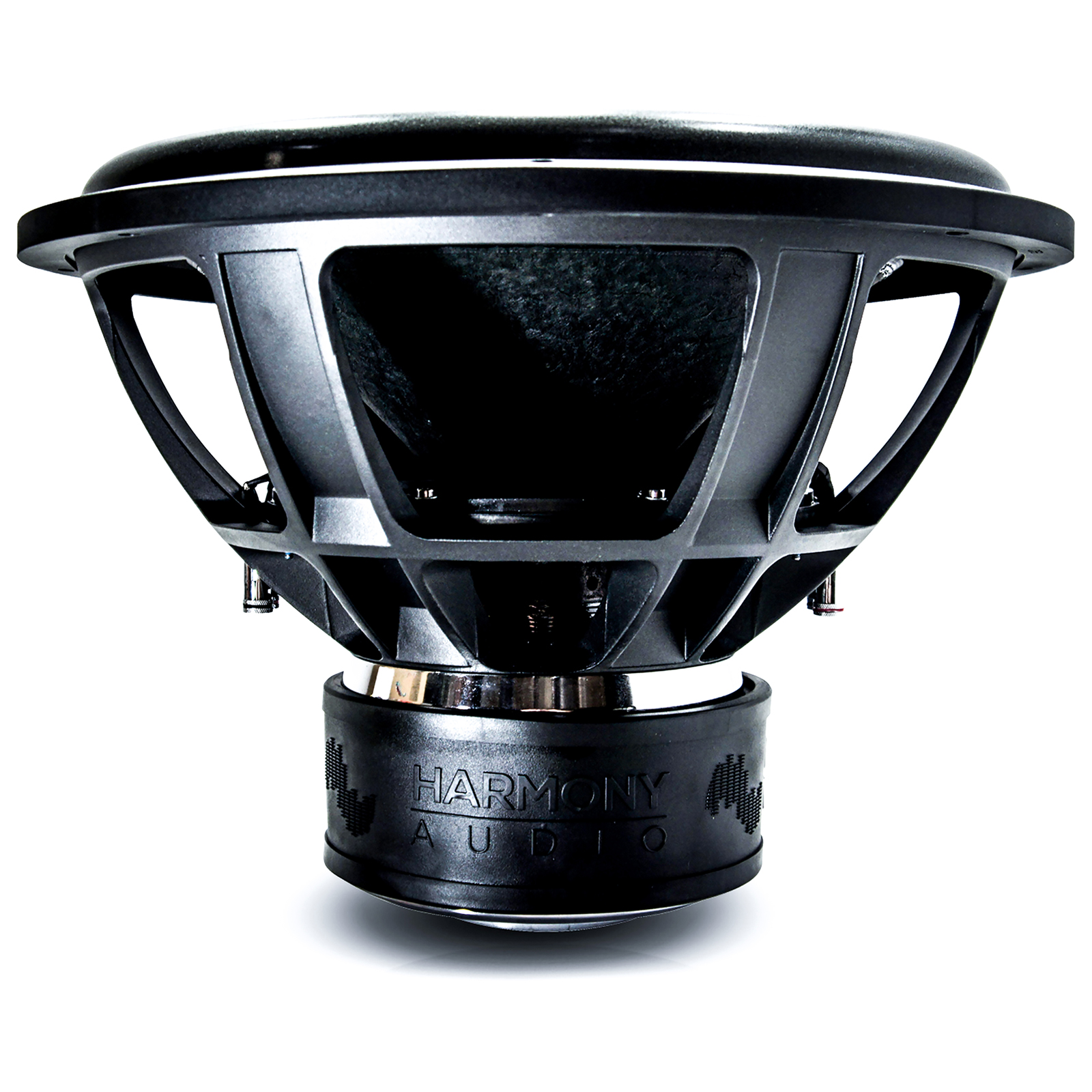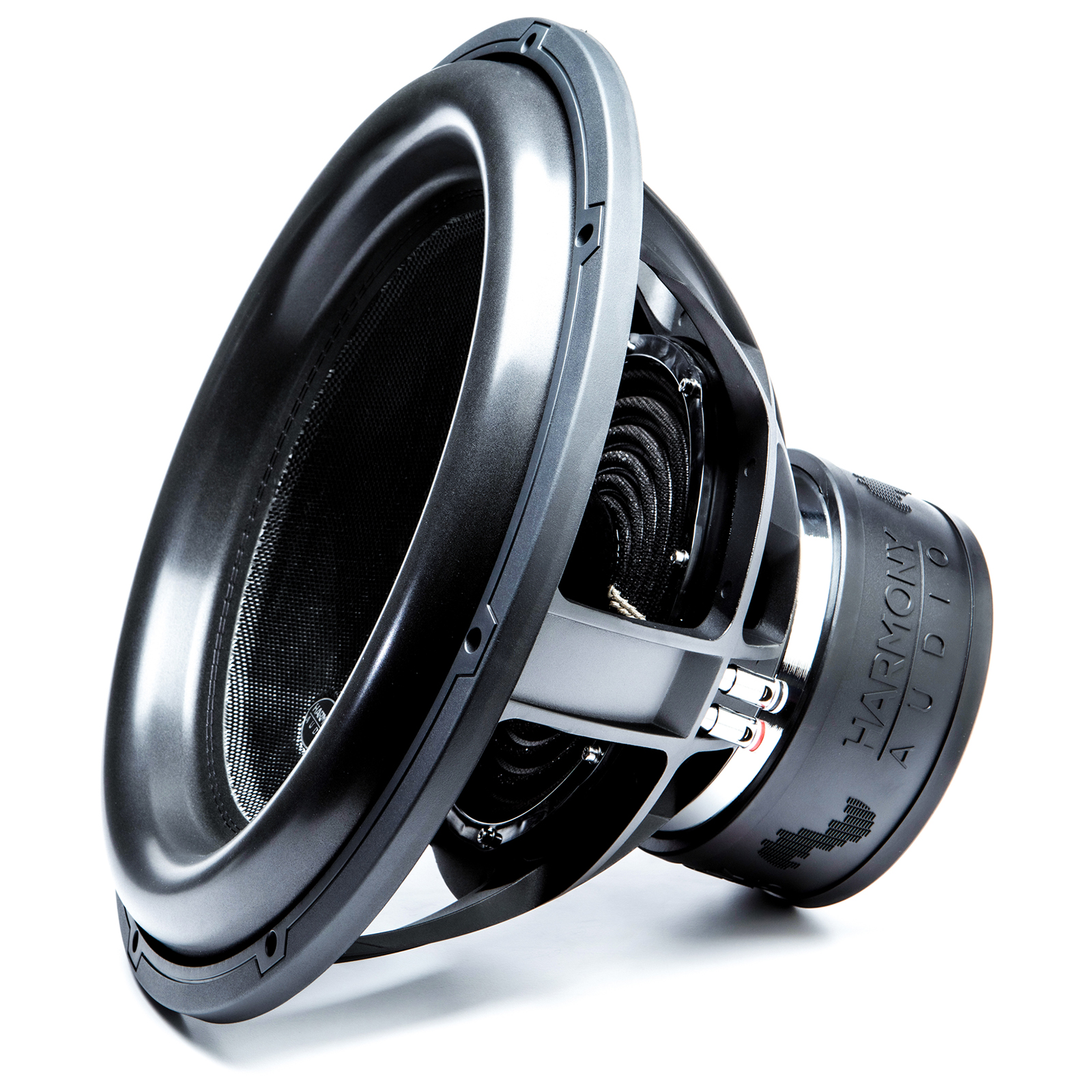 Why do all Harmony Audio subs feature interwoven tinsel leads? The answer is simple we demand nothing but the best. A tinsel lead is the small wire that connects the voice coil to the input terminal and if you look at most other subs its positioned so when the subwoofer is playing the cone will actually slap into the leads creating a pop noise when playing. The advantage to an interwoven tinsel leads is both increased durability and performance which is what Harmony Audio is all about.