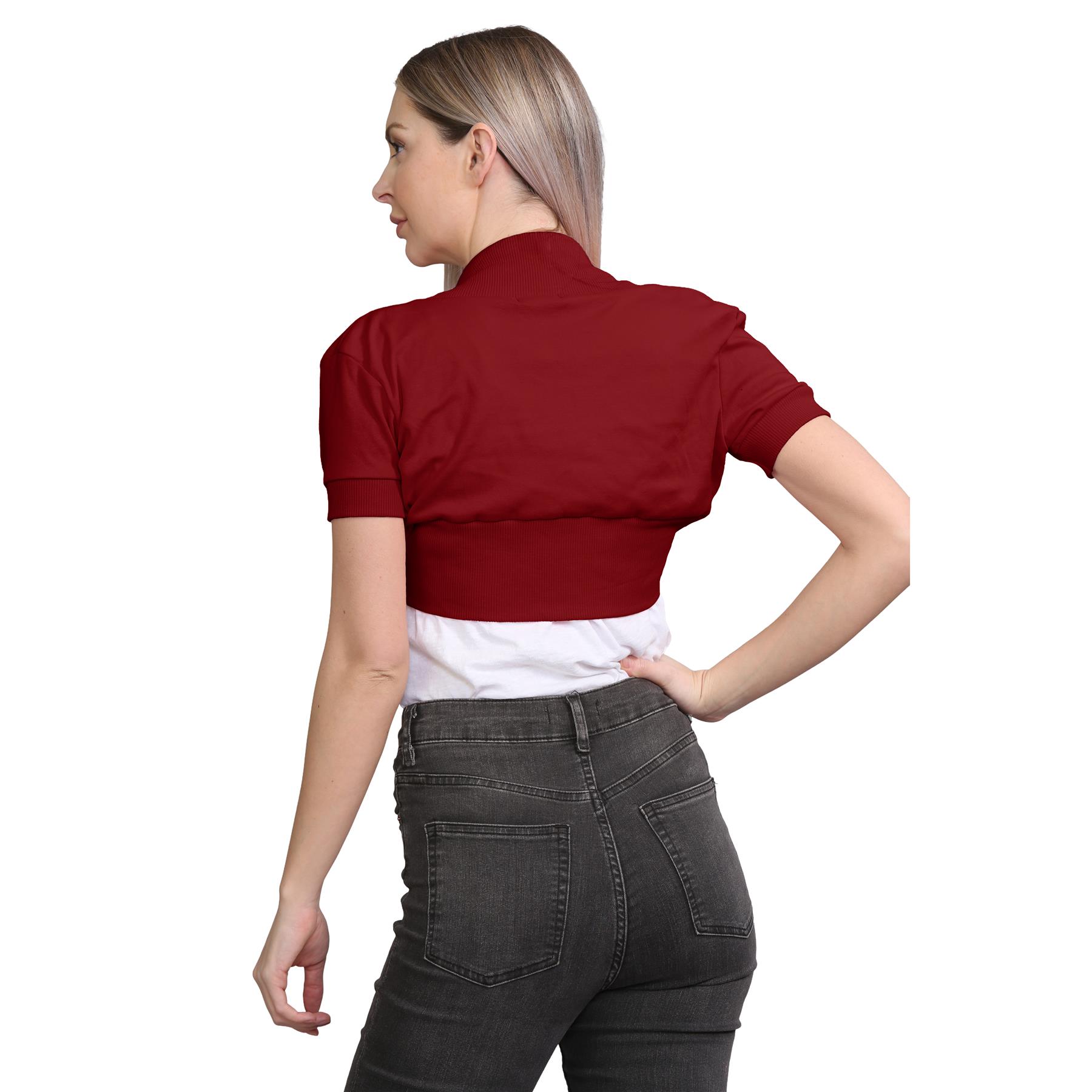 New Womens Cotton Ribbed Cap Short Sleeve Plain Open Front Bolero Shrug Cardigan Top Product Info: