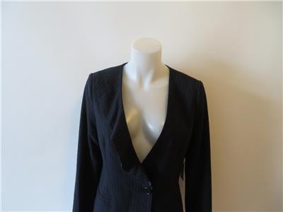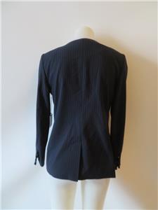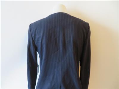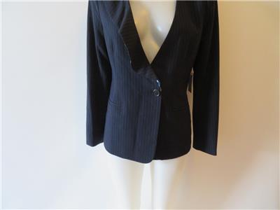 - NWT WOMENS ECRU NAVY PINSTRIPE W/RUFFLES JACKET SIZE 6 *