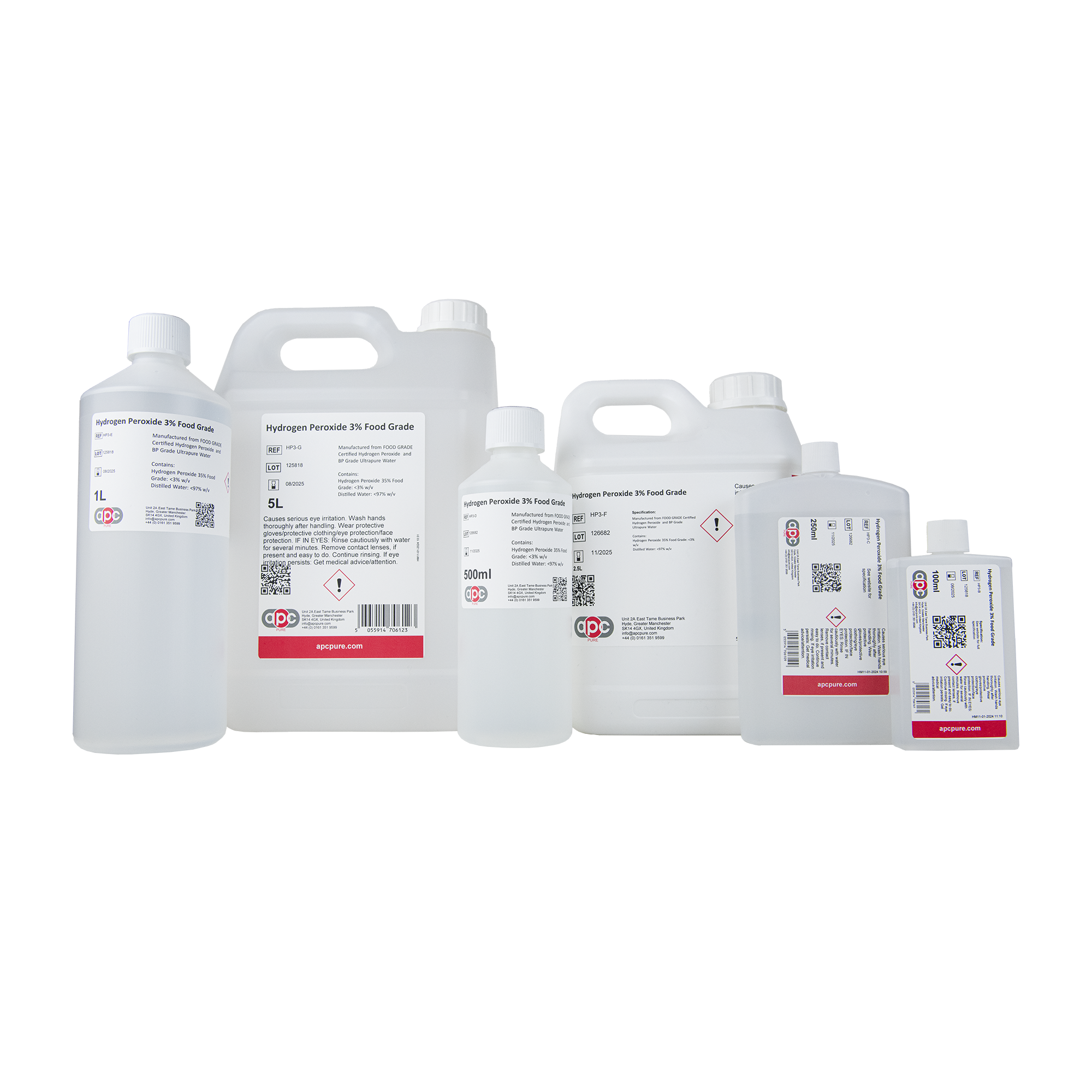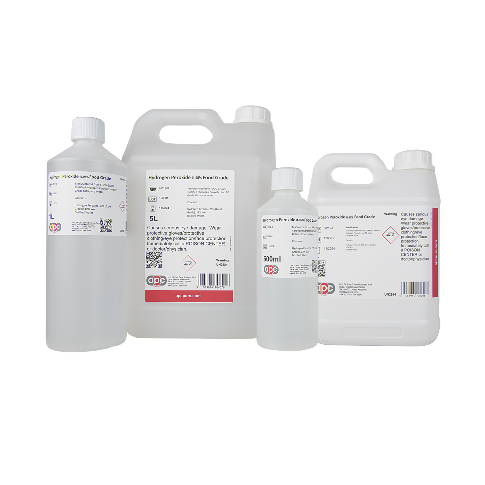 Manufactured from FOOD GRADE Certified Hydrogen Peroxide and BP Grade Ultrapure Water