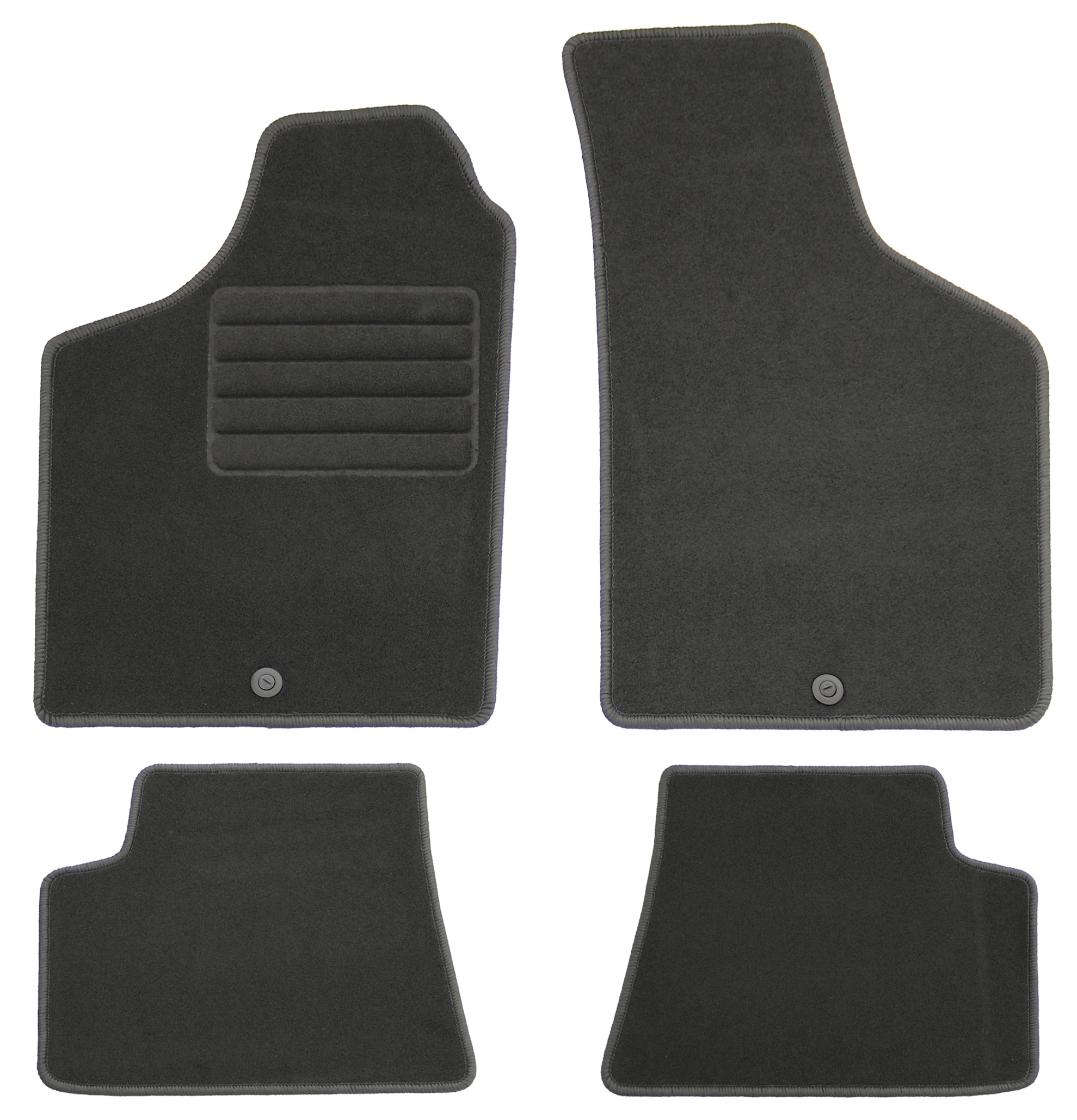 Die Grundfarbe der Fußmatten ist schwarz. Dies passt sich bestens und neutral an die meisten Fahrzeuge an, deren Bodenteppich bereits dunkel gehalten ist. Unauffällig und dezent, aber dennoch hochwertig eingefasst sind die Fußmatten mit schwarzem Glanzgarn gekettelt.