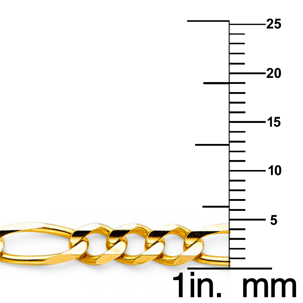 Genuine 14k Yellow Gold 4.7mm Concave 3+1 Figaro Chain Necklace 22" 24" 26"