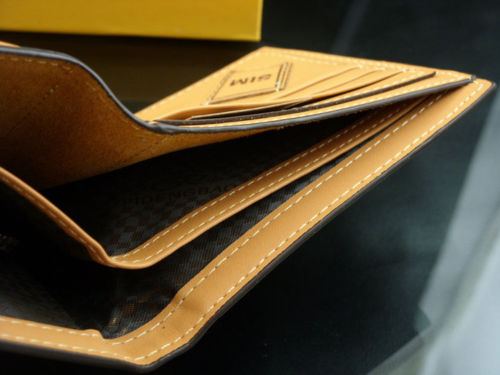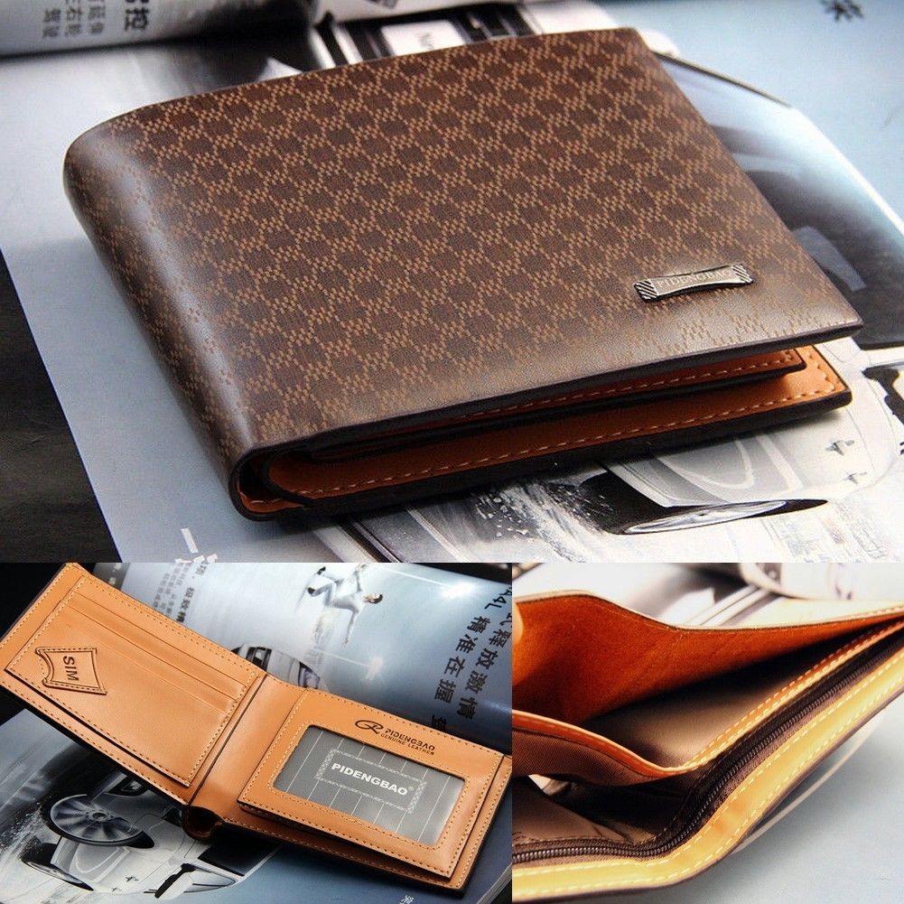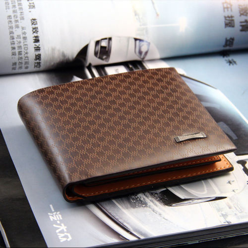 Designer Mens Leather Wallet Lattice ID Card Holder Protection Plaid Purse Brown