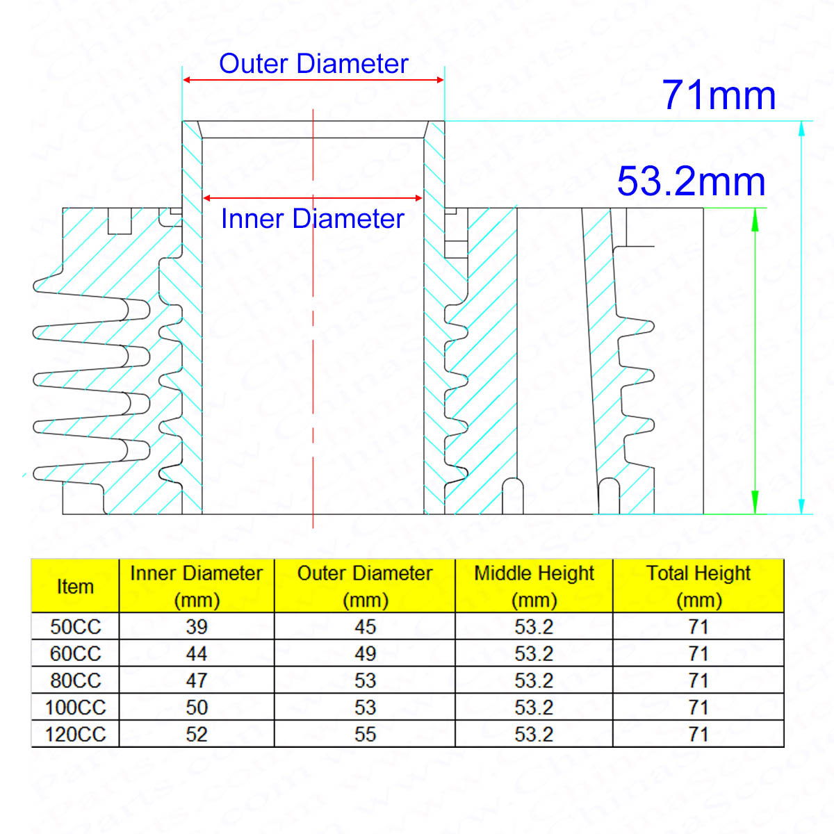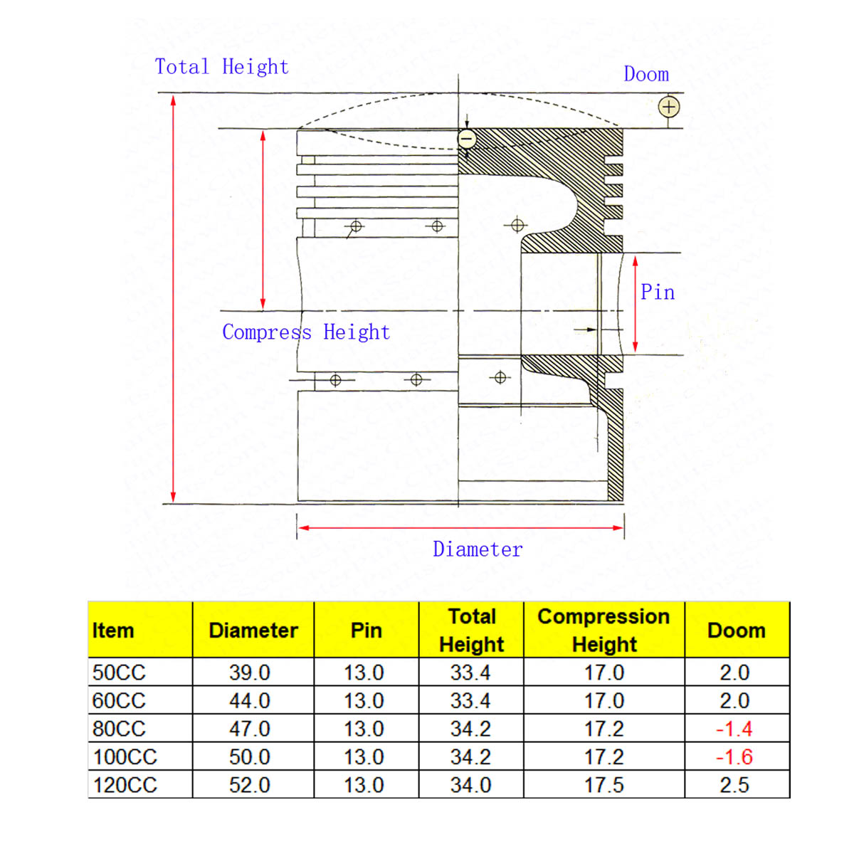 GY6 50CC 60CC 80CC 100CC 120CC 39MM 44MM 47MM 50MM 52MM Cylinder Piston Ring Gasket Kit Taotao Keeway Scooter Parts