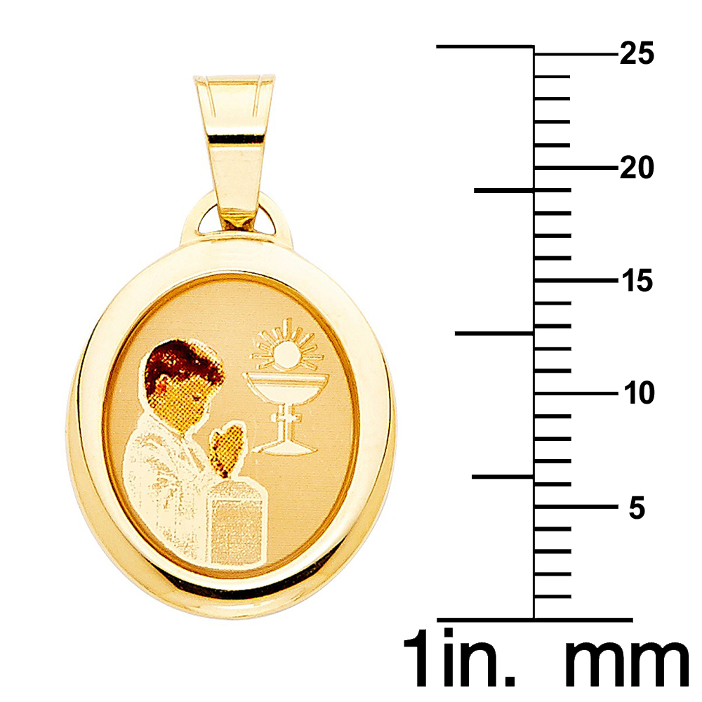 Genuine 14k Yellow Gold 0.74" Male First Communion Pendant Necklace 16" to 22"