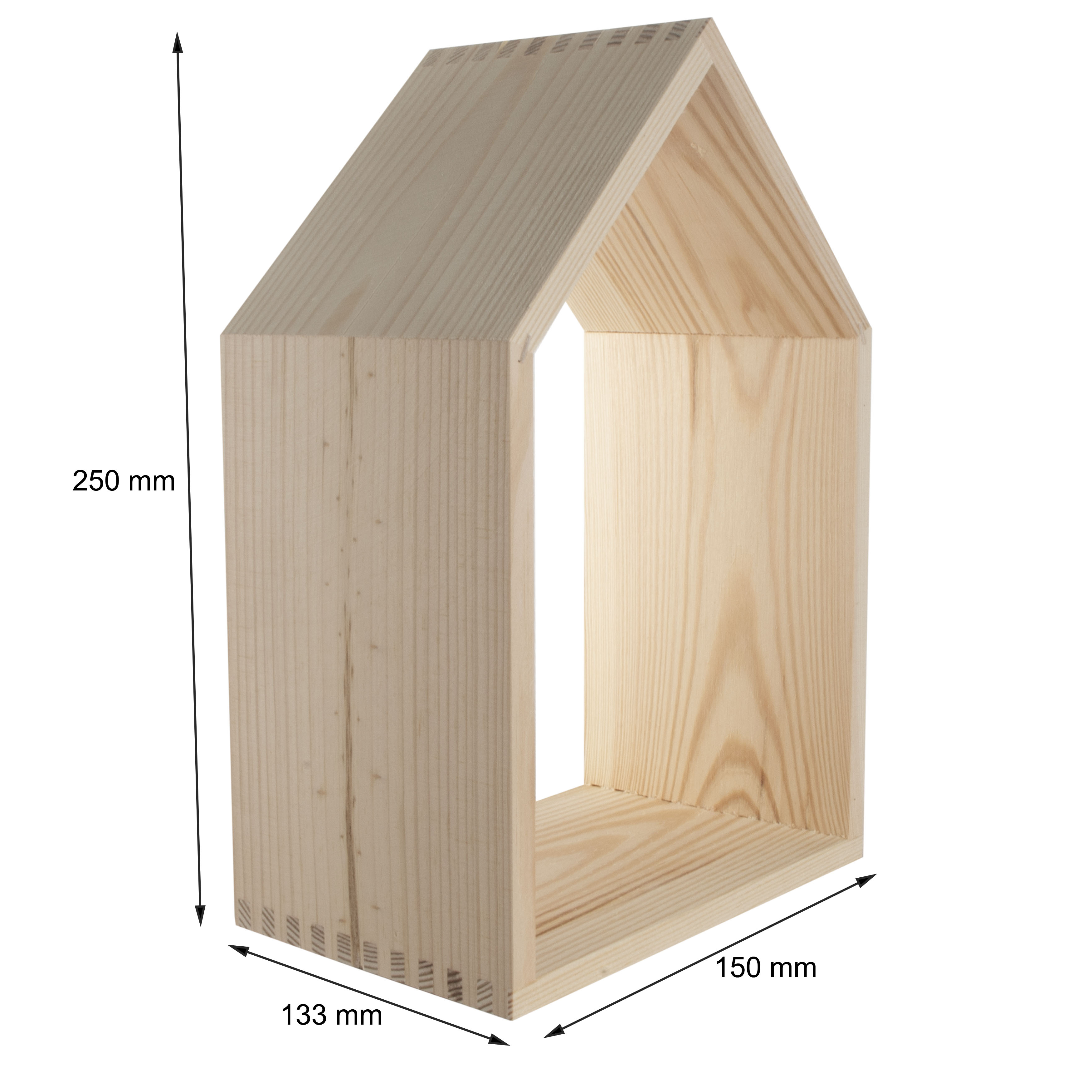 Wooden House Shaped Self Box made from unpainted pinewood. Ideal for DIY decorating with various methods.