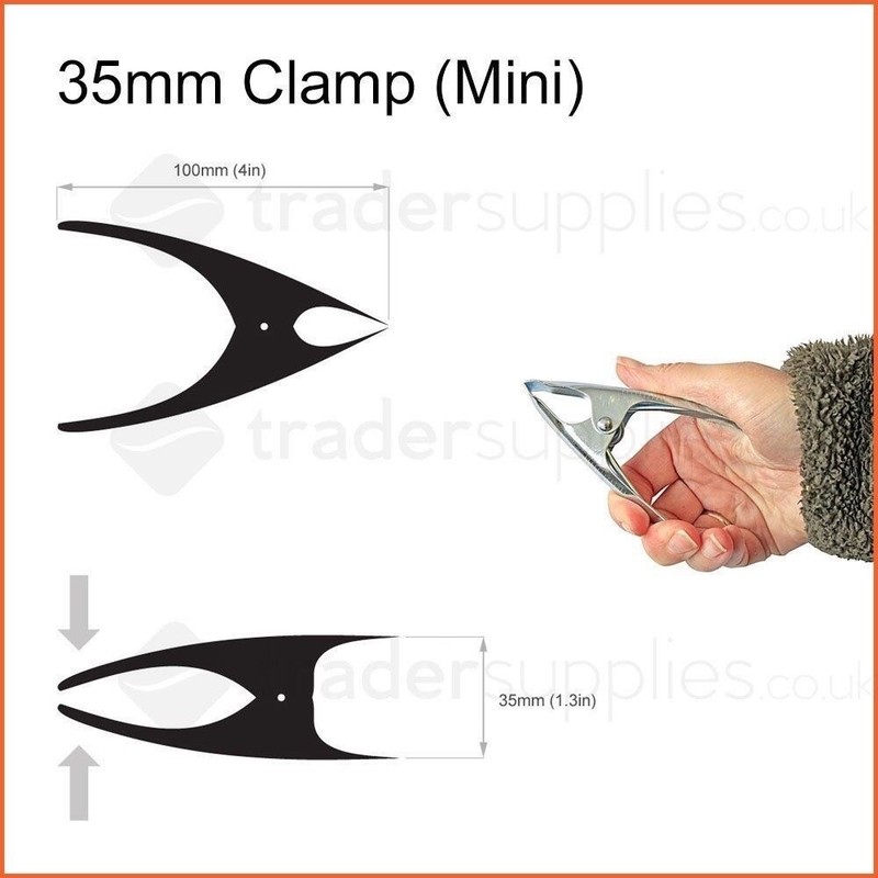 These dimensions refer to jaw capacity. See the diagrams in the picture section which explain the dimensions in further detail. These are general purpose pressed steel clamps incorporating a heavy duty coil spring. As with all our spring clamps, these clips have a huge variety of uses including DIY, camping, caravanning and market trading.