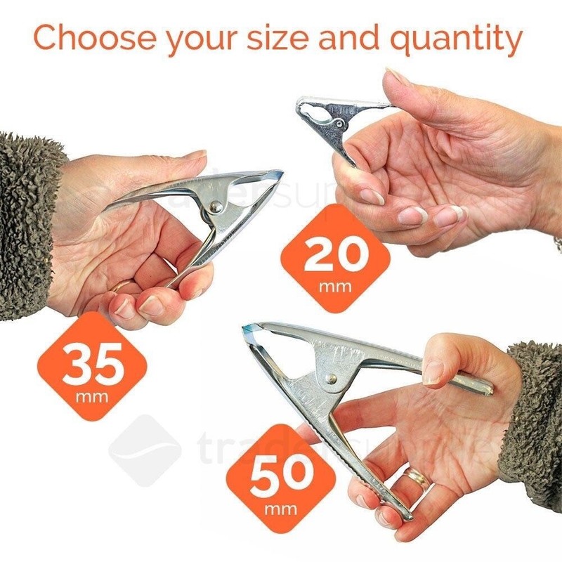 This listing is for BISHOP® branded metal spring clamps, available in a range of sizes and quantities. Select your preferred size and quantity from the drop down menu towards the top of this page. The larger the quantity the greater the saving.