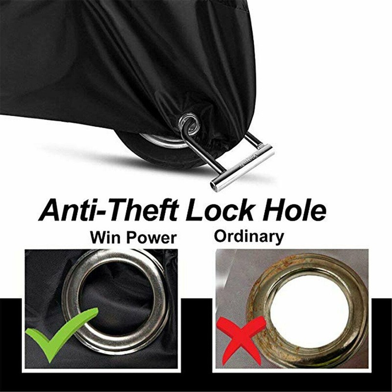 Our motorcycle cover has a reserved anti-theft keyhole design, which can be used with a chain lock for more security