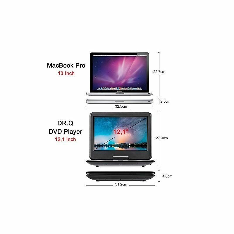 Schwenkbarer 12,1-Zoll-HD-Bildschirm: Der schwenkbare 12,1-Zoll-1280 * 800-HD-TFT-Bildschirm ermöglicht zusammen mit seiner 270-Grad-Dreh- und 180-Grad-Flip-Funktion ein extremes Seherlebnis und eine einfache Positionierung. Dieser tragbare DVD-Player sollte eine fantastische Wahl sein, um Ihre Reise noch komfortabler zu gestalten.