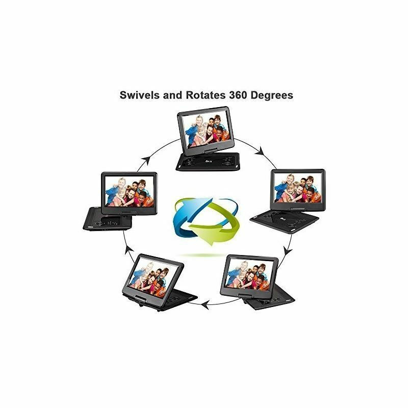 6000-mAh-Akku mit großer Kapazität: Ein eingebauter, wiederaufladbarer, leistungsstarker Akku mit 6000 mAh und hoher Kapazität ermöglicht eine Laufzeit von bis zu sieben Stunden. Dieser tragbare DVD-Player kann auch über Ihr Autoladegerät oder Netzteil mit Strom versorgt werden, um die Batteriebeschränkungen vollständig zu umgehen.