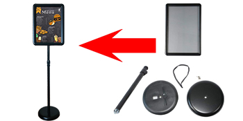 ADJUSTABLE VIEW: The base sign stand has an overall height between 31.5" and 48" tall, and the metal pole fits your every need. The poster frame can be tilted and turned for viewing from any angle.