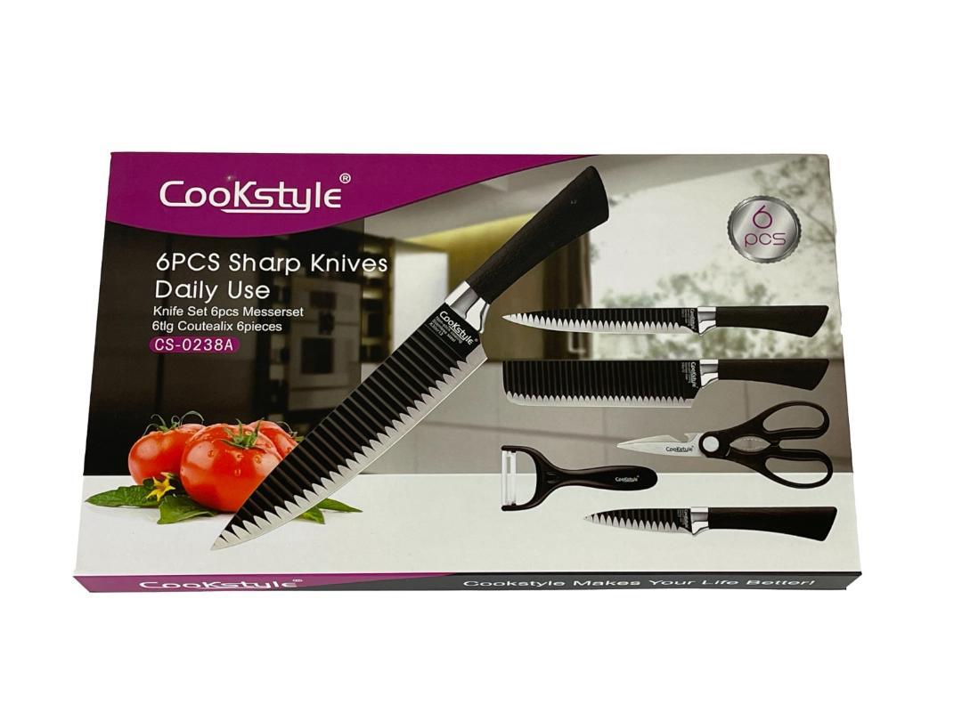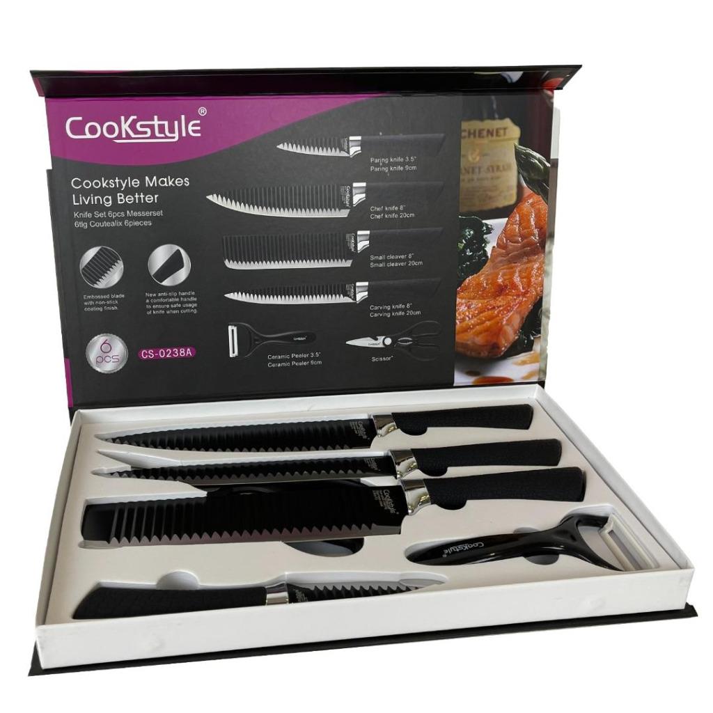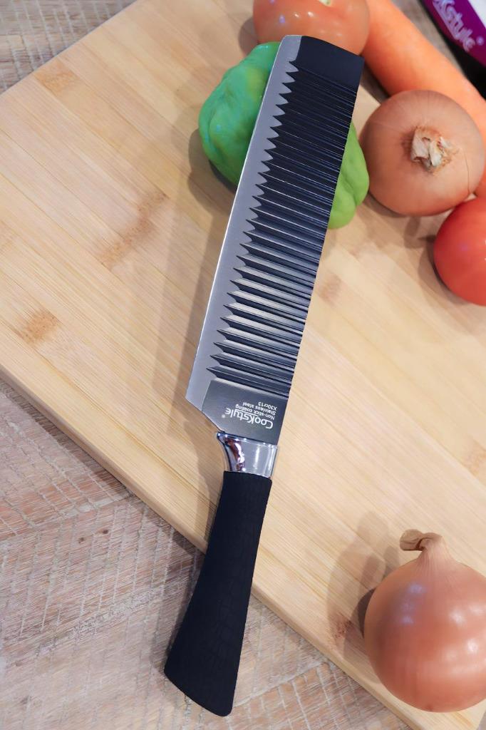 A specialized set of stainless steel nonstick knife sets for all your chopping needs. Includes chef knife, Carving knife, Cleaver knife, fruit knife, kitchen shears & ceramic peeler.