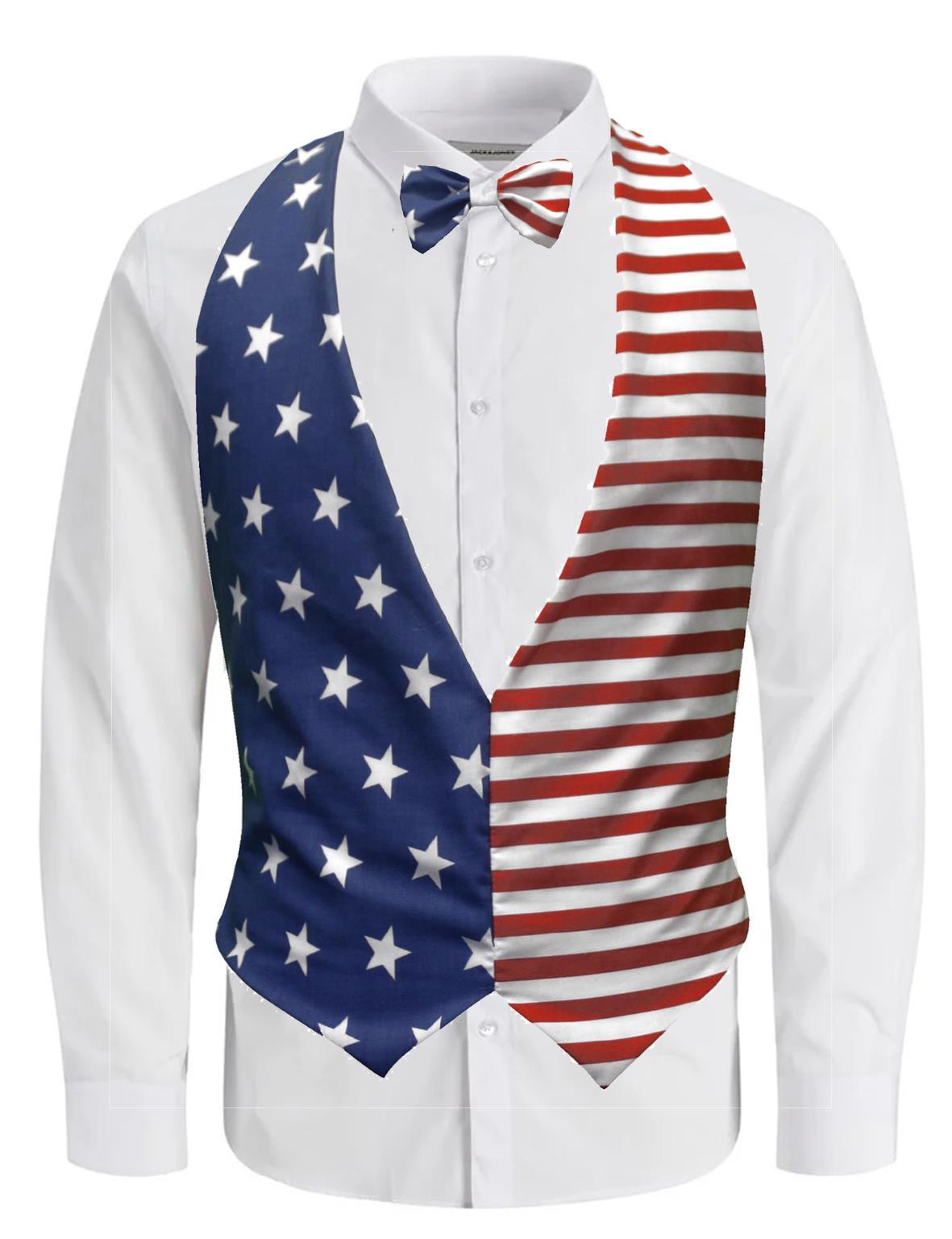 Adults USA Stars & Stripes Backless Waistcoat & Bowtie