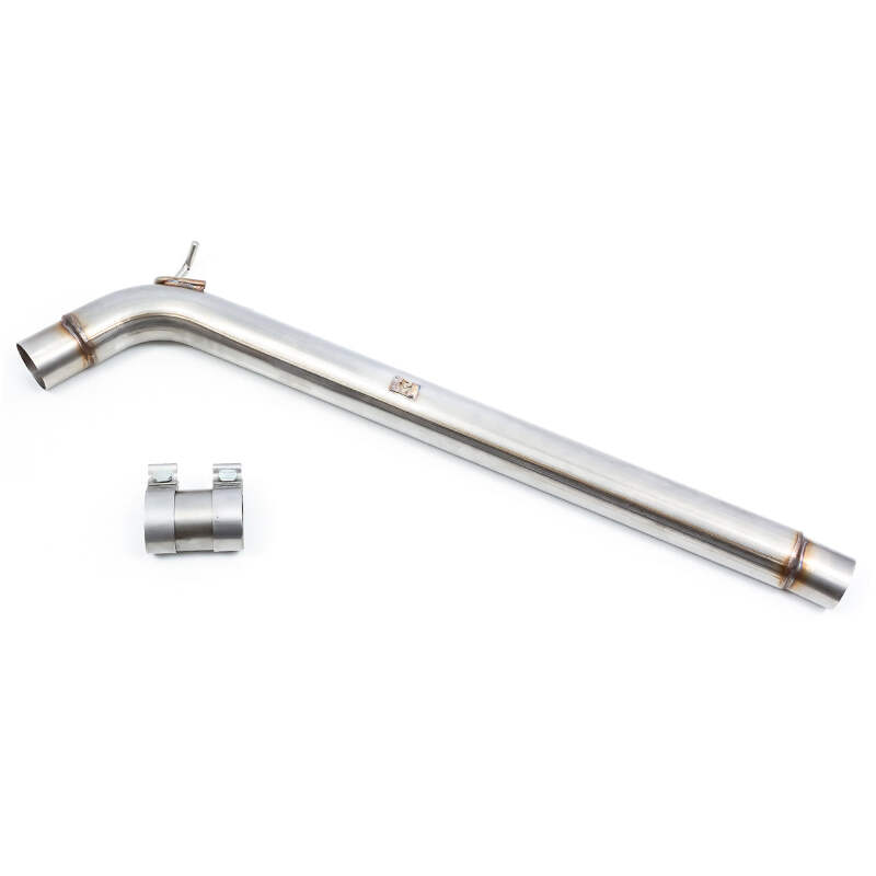 The resonator delete pipe is manufactured with CNC mandrel bent T304 stainless steel pipework with a bore size of 2.75" (69.9mm). The new part removes the central silencer/resonator found in the O/E system allowing for smoother gas flow rates for improved power delivery and a noticeably enhanced exhaust tone.