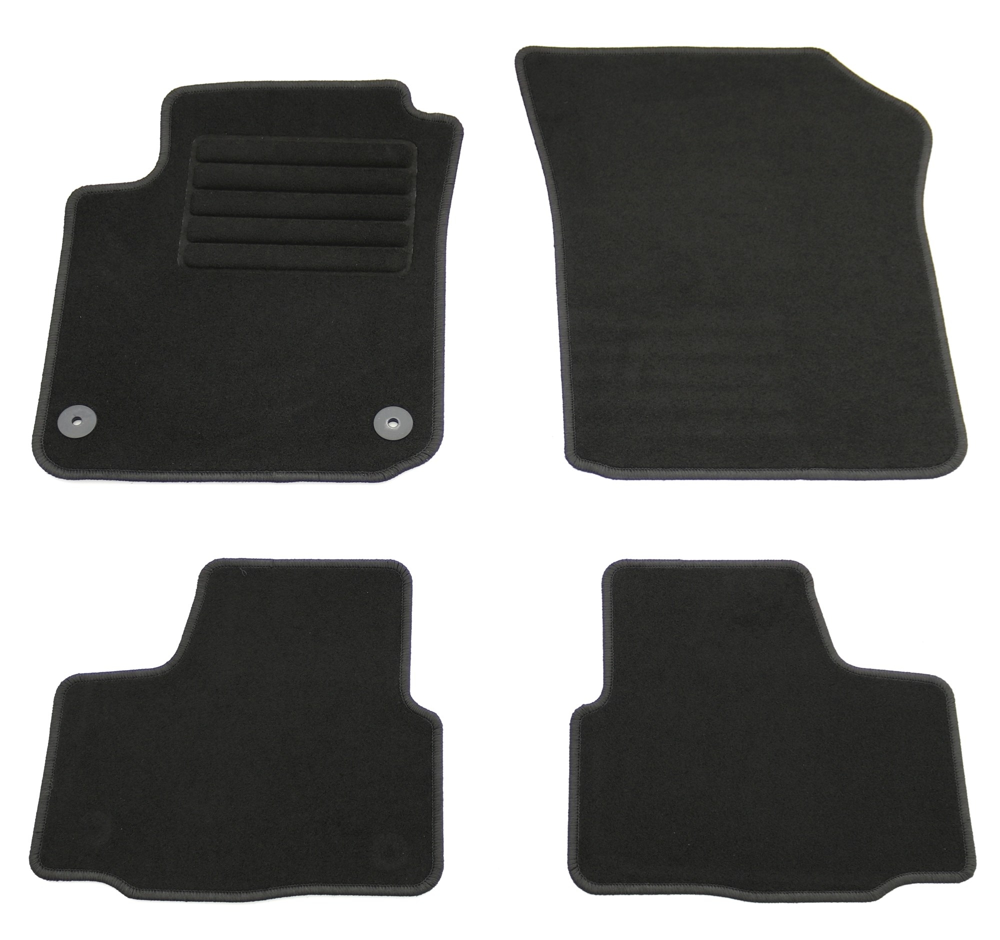 Die Grundfarbe der Fußmatten ist schwarz. Dies passt sich bestens und neutral an die meisten Fahrzeuge an, deren Bodenteppich bereits dunkel gehalten ist. Unauffällig und dezent, aber dennoch hochwertig eingefasst sind die Fußmatten mit schwarzem Glanzgarn gekettelt.