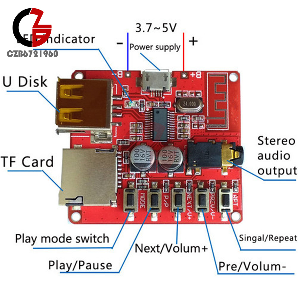 Package include:1*3.7-5V Bluetooth 4.1 MP3 Player Lossless Decoder Board Micro USB TF SD Card
