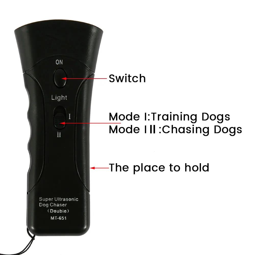 Used to prevent dog attacks, issue ultrasound to repel the dog or wild wolf.