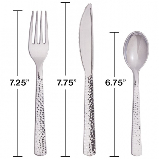 These forks, spoons, and knives feature a chic rose gold look and a handle that looks like modern hammered metal. Made from sturdy plastic, they'll hold up to any meal while also adding elegance to your event or service.