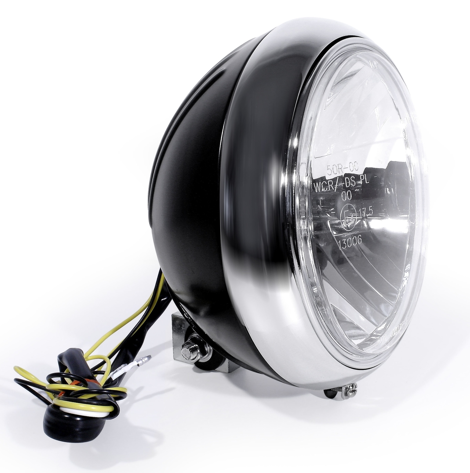 7" Phare noir pour Harley Davidson avec une vitre transparent