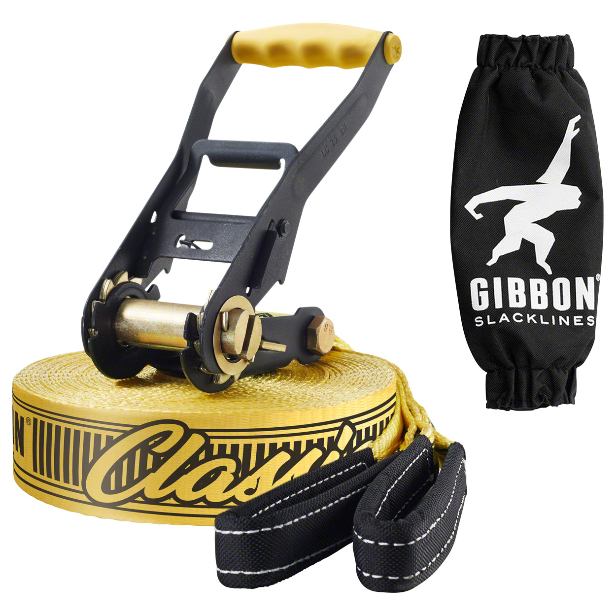 Der gelbe GIBBON Slackline Classic X13 ist der Klassiker für alle Einsteiger und Allrounder. Und wahrscheinlich die am meisten geslackte Line weltweit.