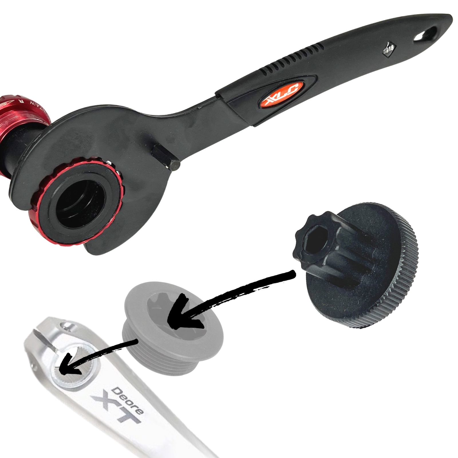 mit abnehmbarer Kurbelschrauben Werkzeug passend für Shimano original oder auch F26 tuning Kurbelschrauben