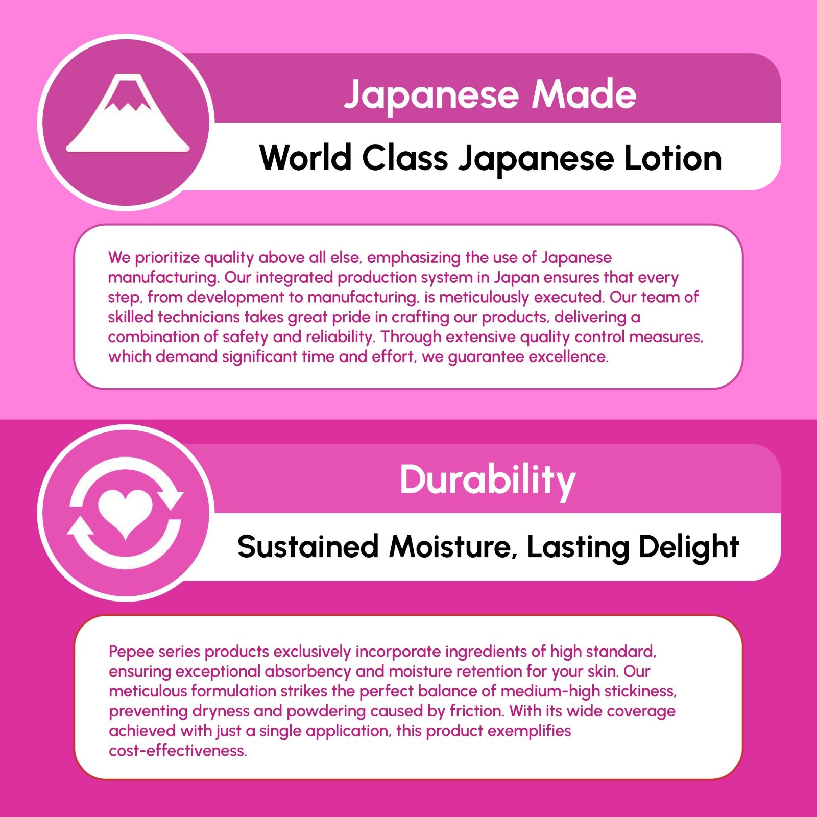 - Made In Japan - All PEPEE lotions are proudly made in Japan with premium quality ingredients and excellent craftsmanship, perfect to provide a pleasurable experience for you.