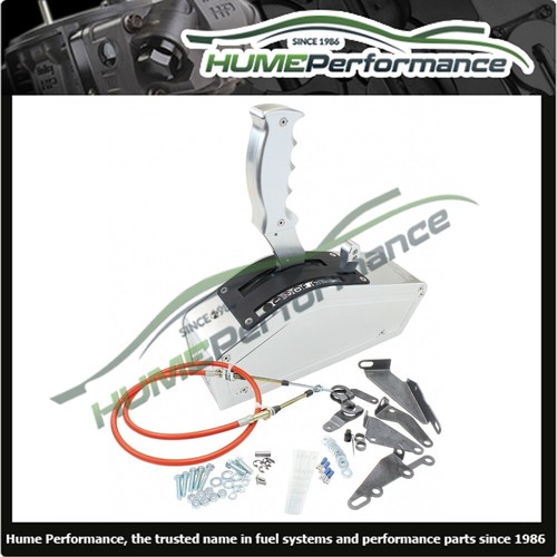 The pistol grip handle attached to the shifter stick is a handy two piece bolt together design that allows interchangeable billet side plates to be purchased separately. Along with a matching reverse lockout handle that only requires one hand to operate.