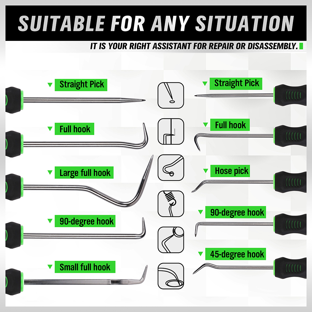 8pc Pick & Hook Set Extra Long O-Ring & Seal Remover Soft Grip Assorted Shapes
