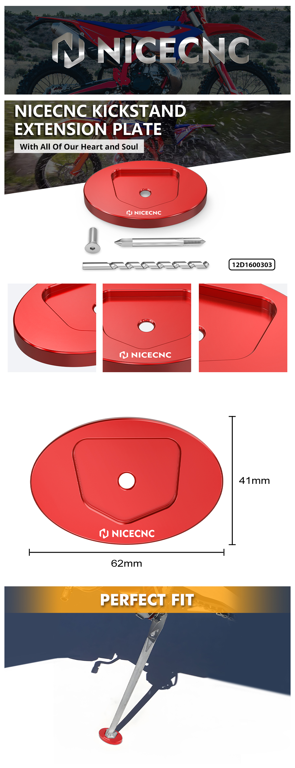 Billet Side Stand Foot Pad, Helps Prevent Side Stand from Sinking into Ground. Whether you find yourself parking on grass, gravel, mud or forest soil, the increased surface area of the Sidestand Foot dramatically improves the stability, making your off the beaten path parking much easier.