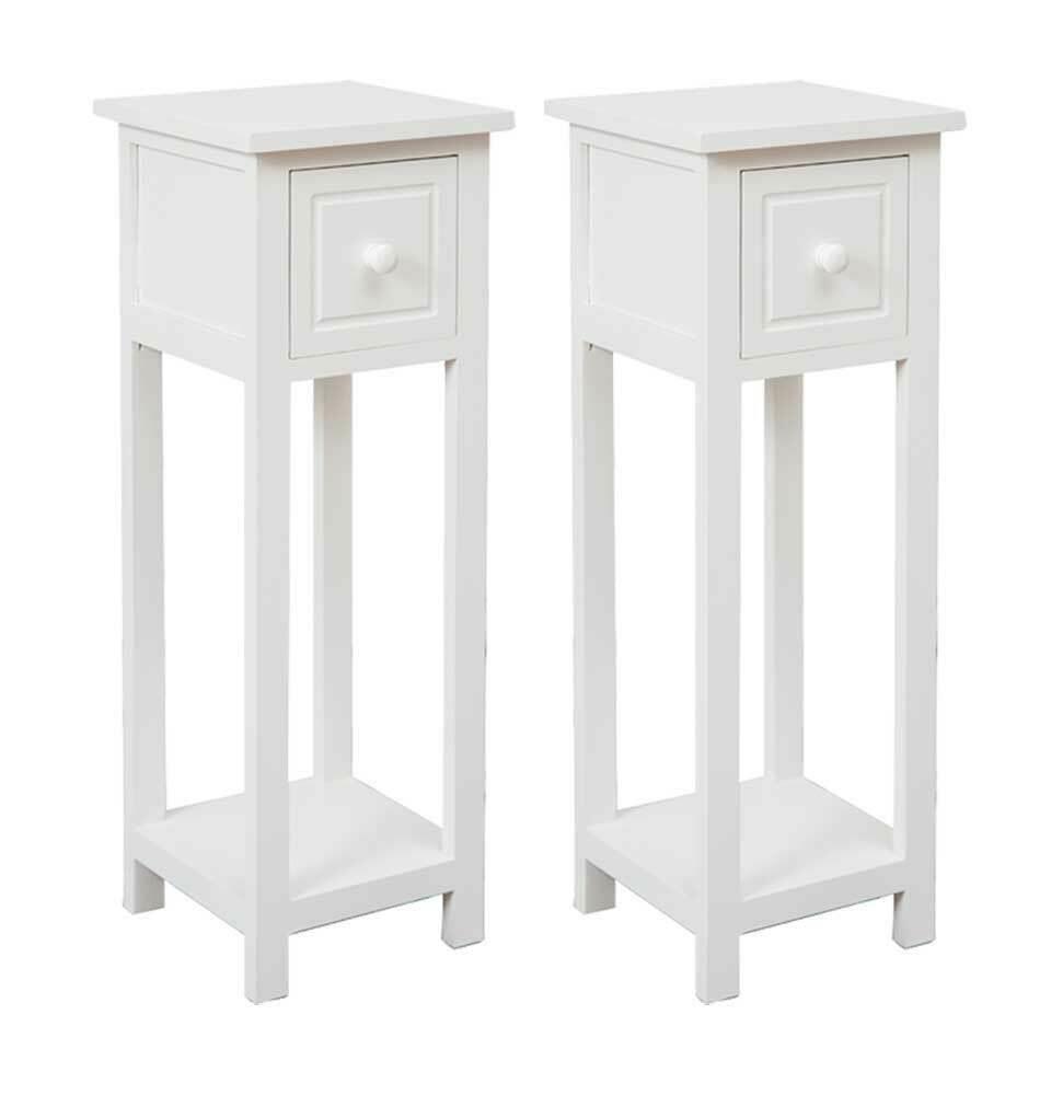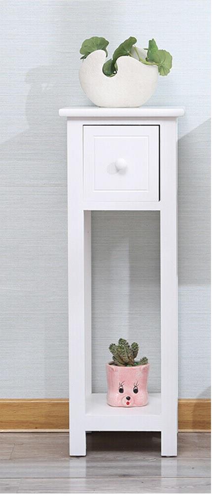 Single or Set of White Bedside Side End Table with Drawer and Shelf