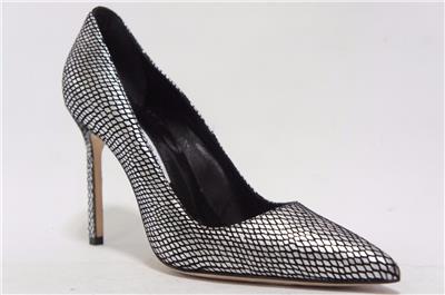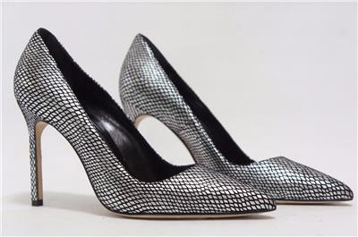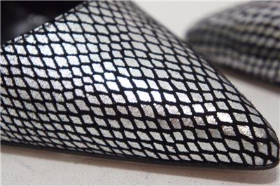 Silver and black suede intrigue to a striking single-sole pump finished with a perfectly pointed toe.