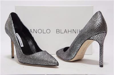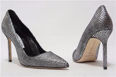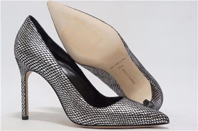 Description MANOLO BLAHNIK BB 105 SILVER/BLACK POINT-TOE PUMP