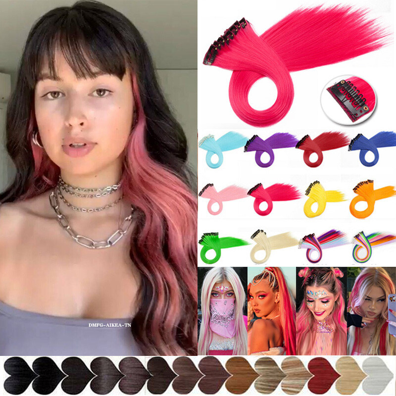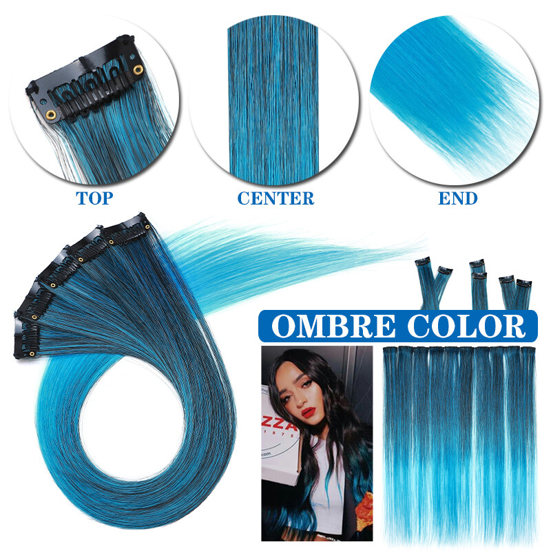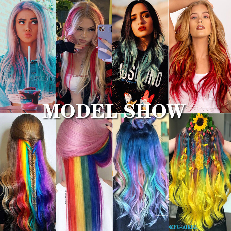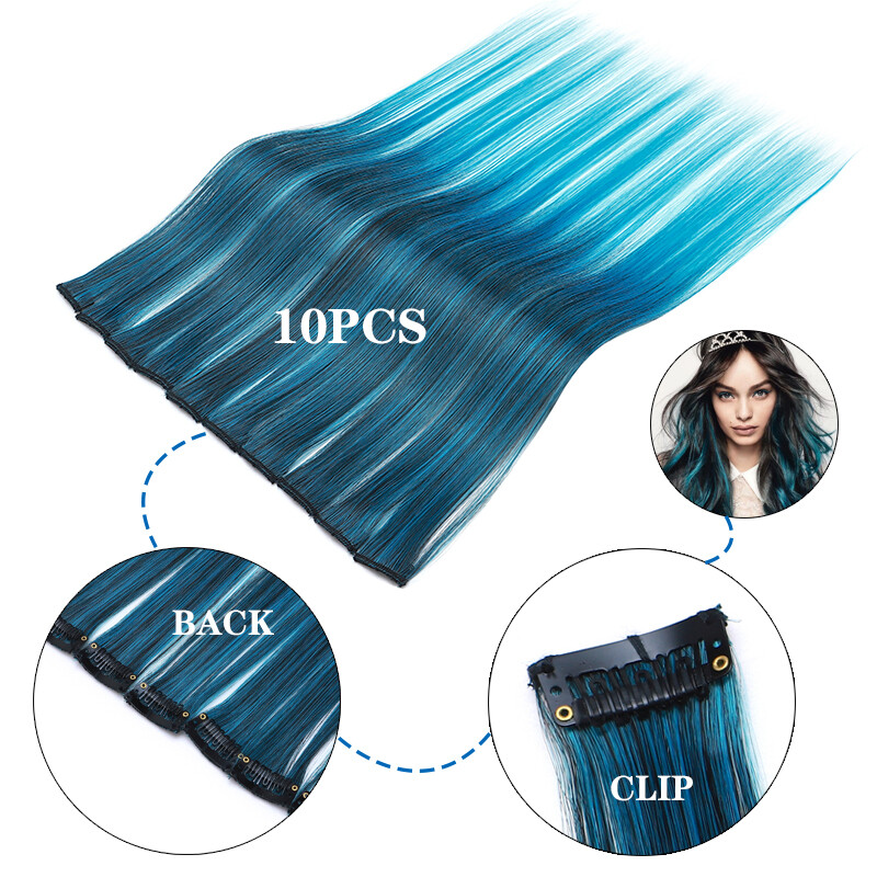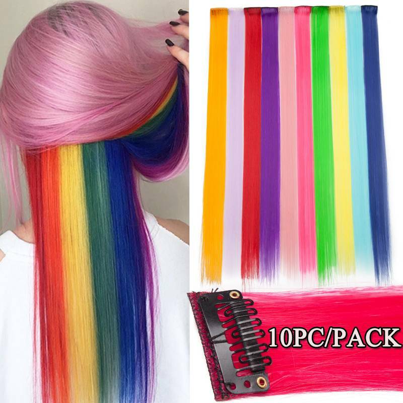 10pcs/Set Rainbow color Cosplay Clip in Hair Extension