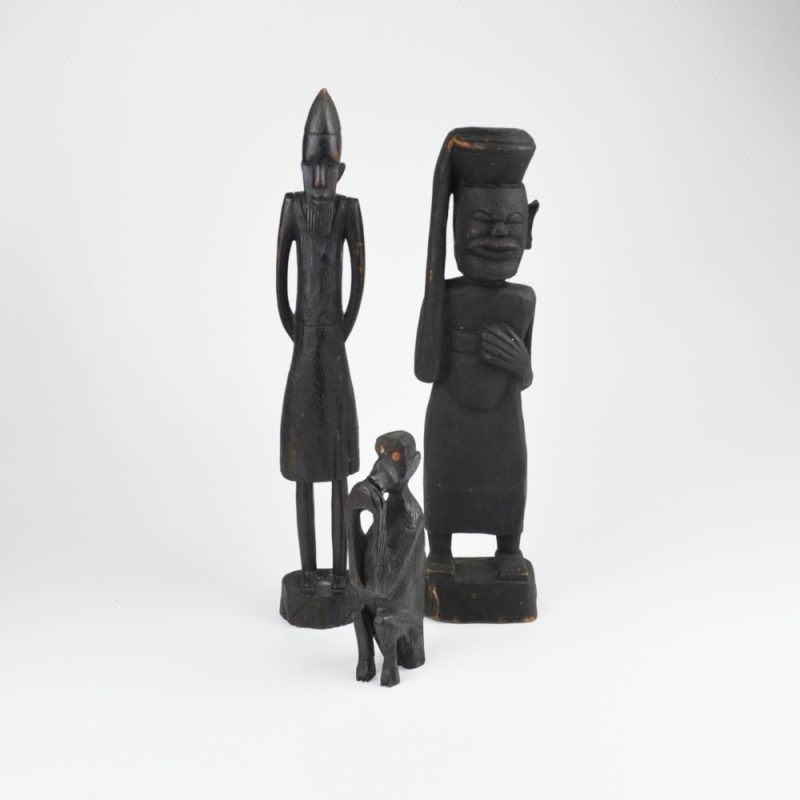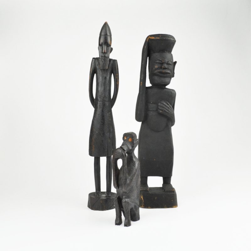 3 Figuren – Holz – Afrika – geschnitzt – Affe – Menschen – Handarbeit – Kunst