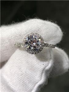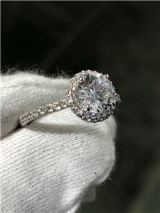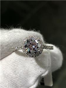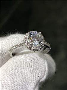 THIS IS TRULY A MUST HAVE DESIGNER 14K WHITE GOLD GENUINE WHITE DIAMONDS HIDDEN HALO 1.50CT ROUND MOISSANITE ENGAGEMENT RING FOR ALL OCCASIONS. MADE WITH 14K WHITE GOLD .585. GET THE DESIGNER LOOK WITHOUT THE EXPENSIVE PRICE TAG! THIS RING WOULD BE A COMPLIMENT FOR ANYONE'S JEWELRY COLLECTION. ALL STONES ARE HAND SET GENUINE WHITE DIAMONDS & MOISSANITE FOR A BEAUTIFUL LOOK & SPARKLE! PLEASE VIEW OUR LISTINGS FOR SOME OTHER UNIQUE ITEMS. COMES WITH A BEAUTIFUL JEWELRY BOX FREE!!