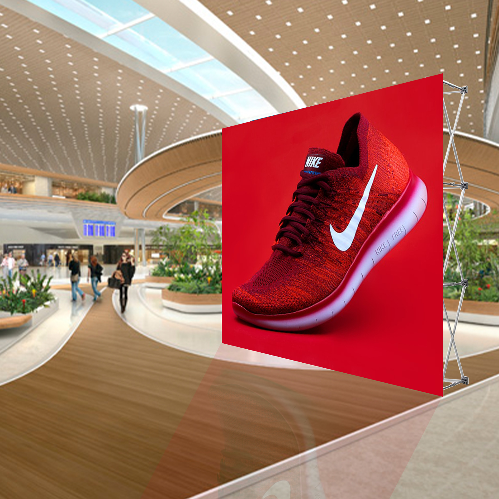 1.The frame is made from high quality aluminium with interlocking limbs that make a strong platform that can support your fabric banner effectively. Fabric attached with Velcro.