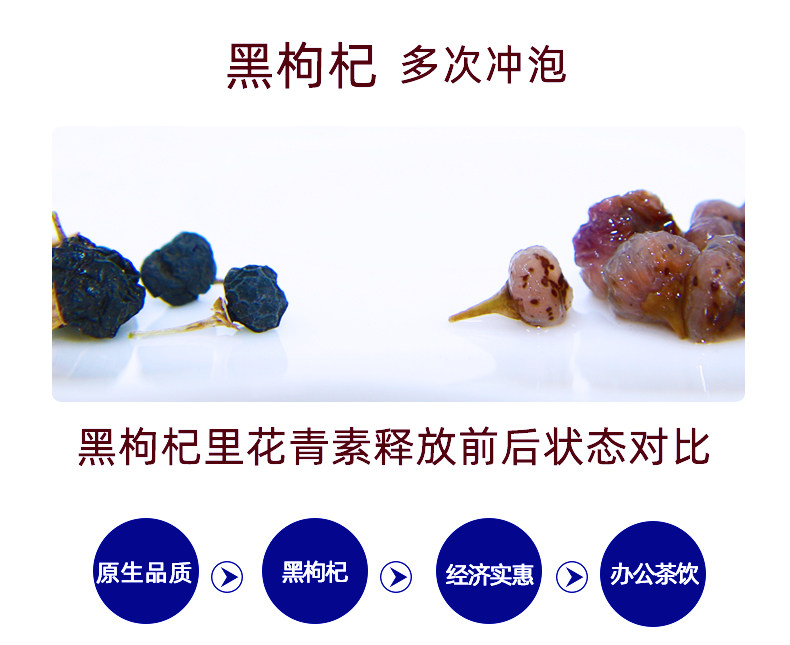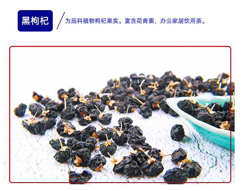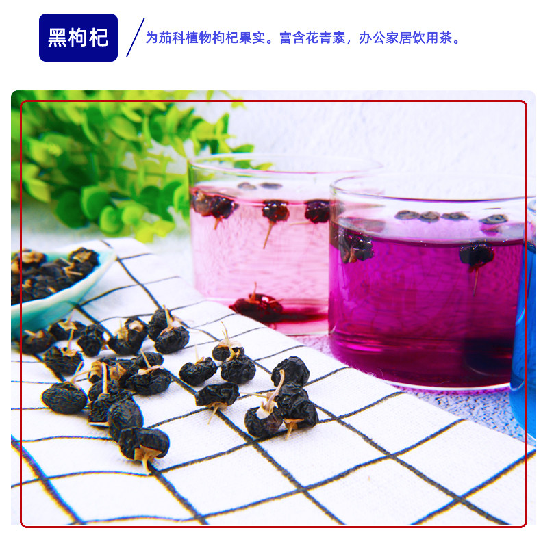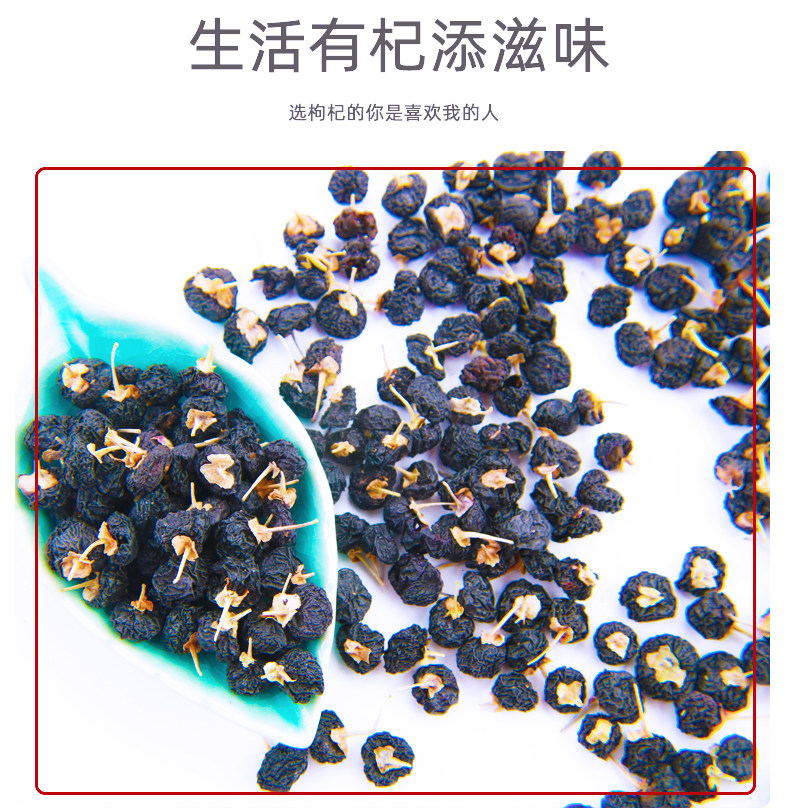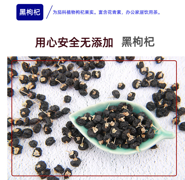 Black wolfberries nutritional value is much higher than the common red one, mineral and trace elements essential content is much higher than the red wolfberry, which contains more melanin free radical scavenging, antioxidant function, is black food leader. Black wolfberry has a high medicinal value, contains protein, fat, carbohydrates, free amino acids, organic acids of various nutrients, minerals, trace elements, alkaloids, vitamins C, B1, B2, etc.