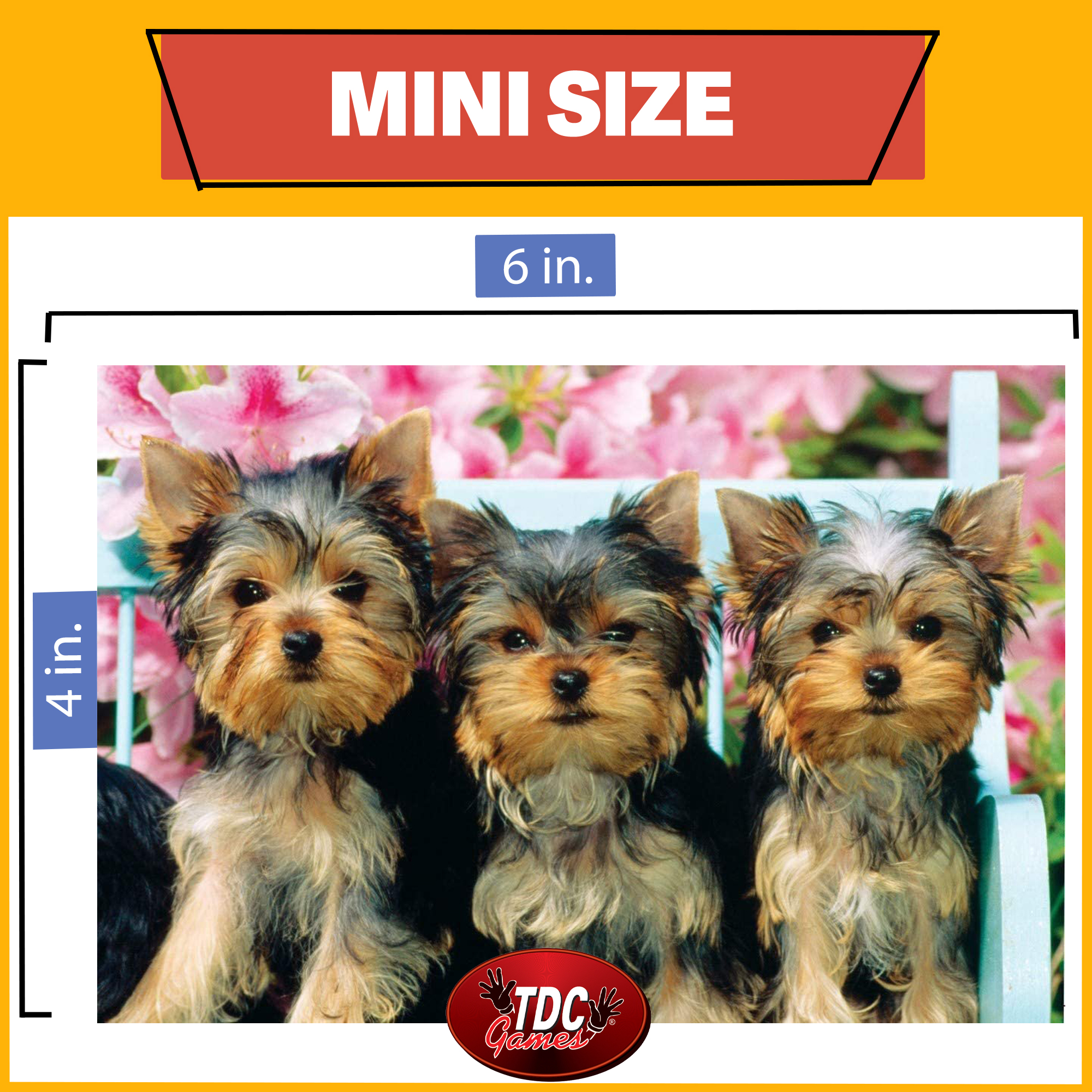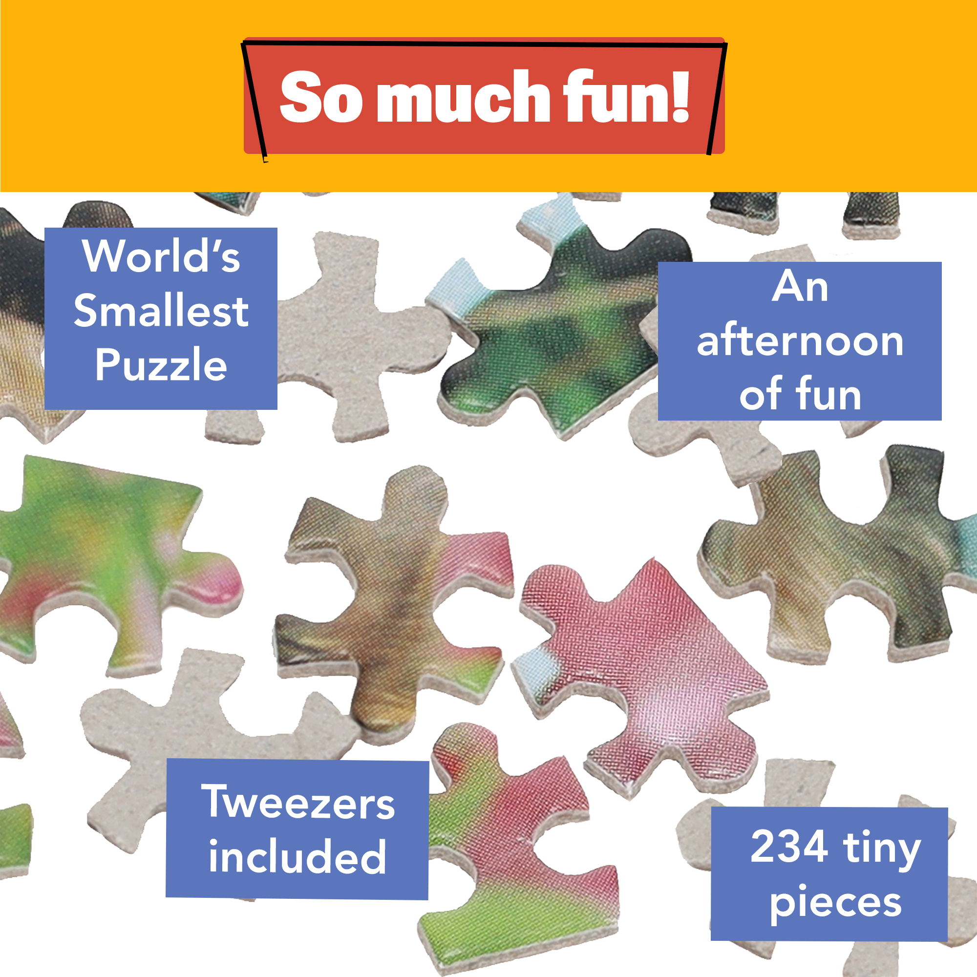 This is a mini puzzle with tiny pieces. While it is small, it can take an afternoon to assemble. This puzzle is great for those that enjoy puzzling, but don't want to sacrifice a whole table top for assembling a puzzle. This one doesn't take up much space, but will still provide you with hours of entertainment. It comes with a set of plastic tweezers that you will need to assemble the puzzle. We Didn't Do It depicts some adorable mischievous puppies in a garden. This die-cut puzzle is perfect for any puppy lover.Each piece is small enough to fit on the tip of your finger, making this the ultimate challenge to test your patience. Makes a great stocking stuffer.