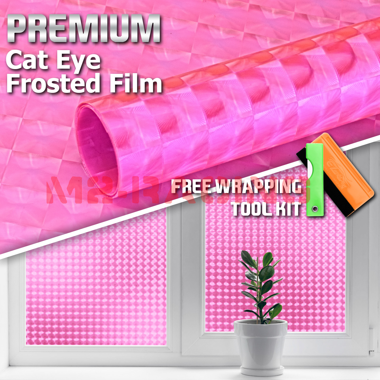 1FTx4FT Cat Eye Pink Frosted Film Glass Home Room Window Security Privacy Decor