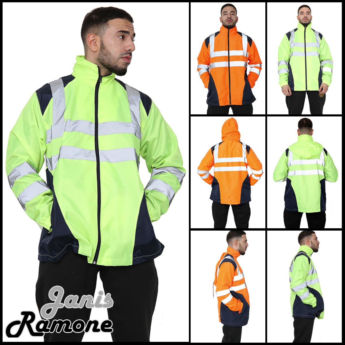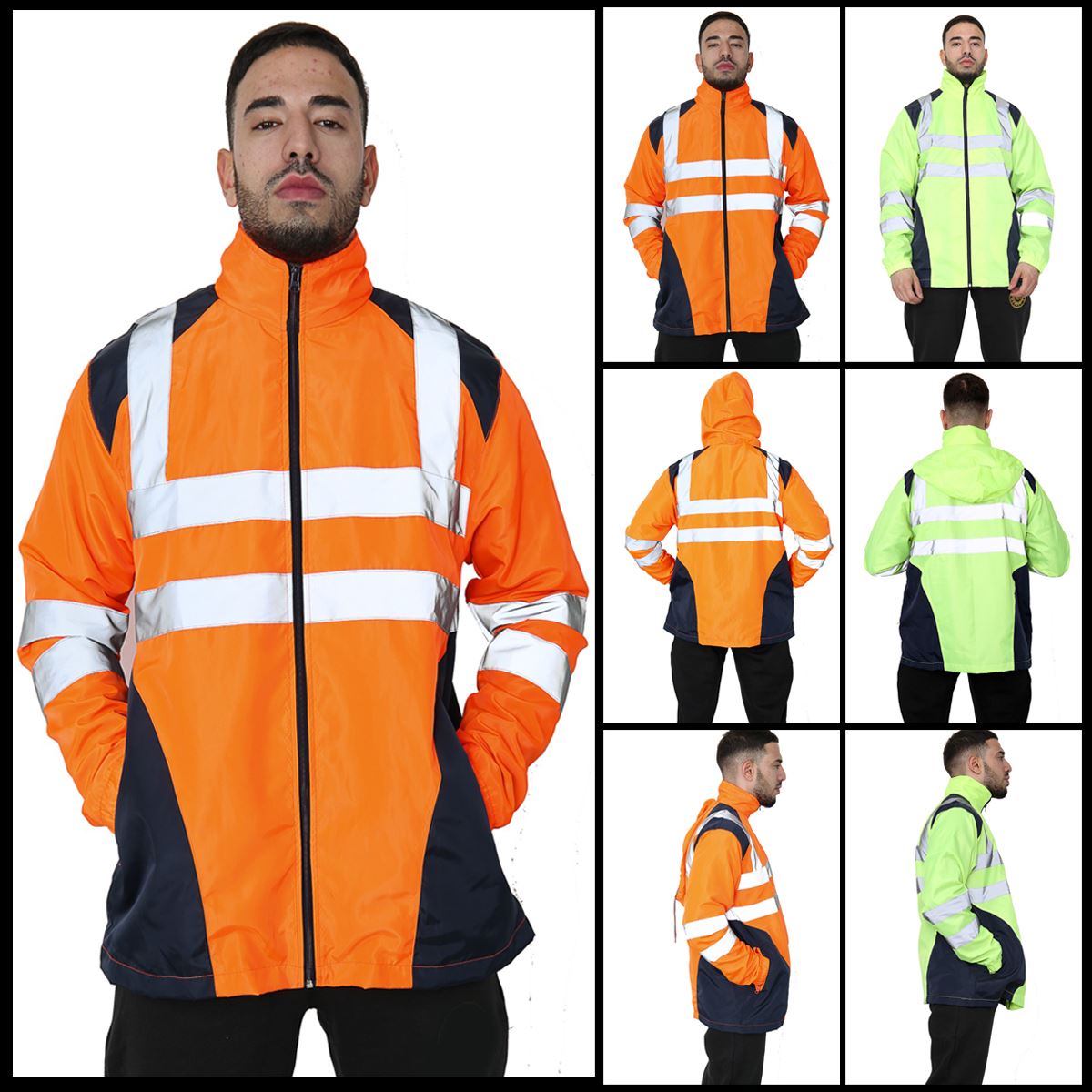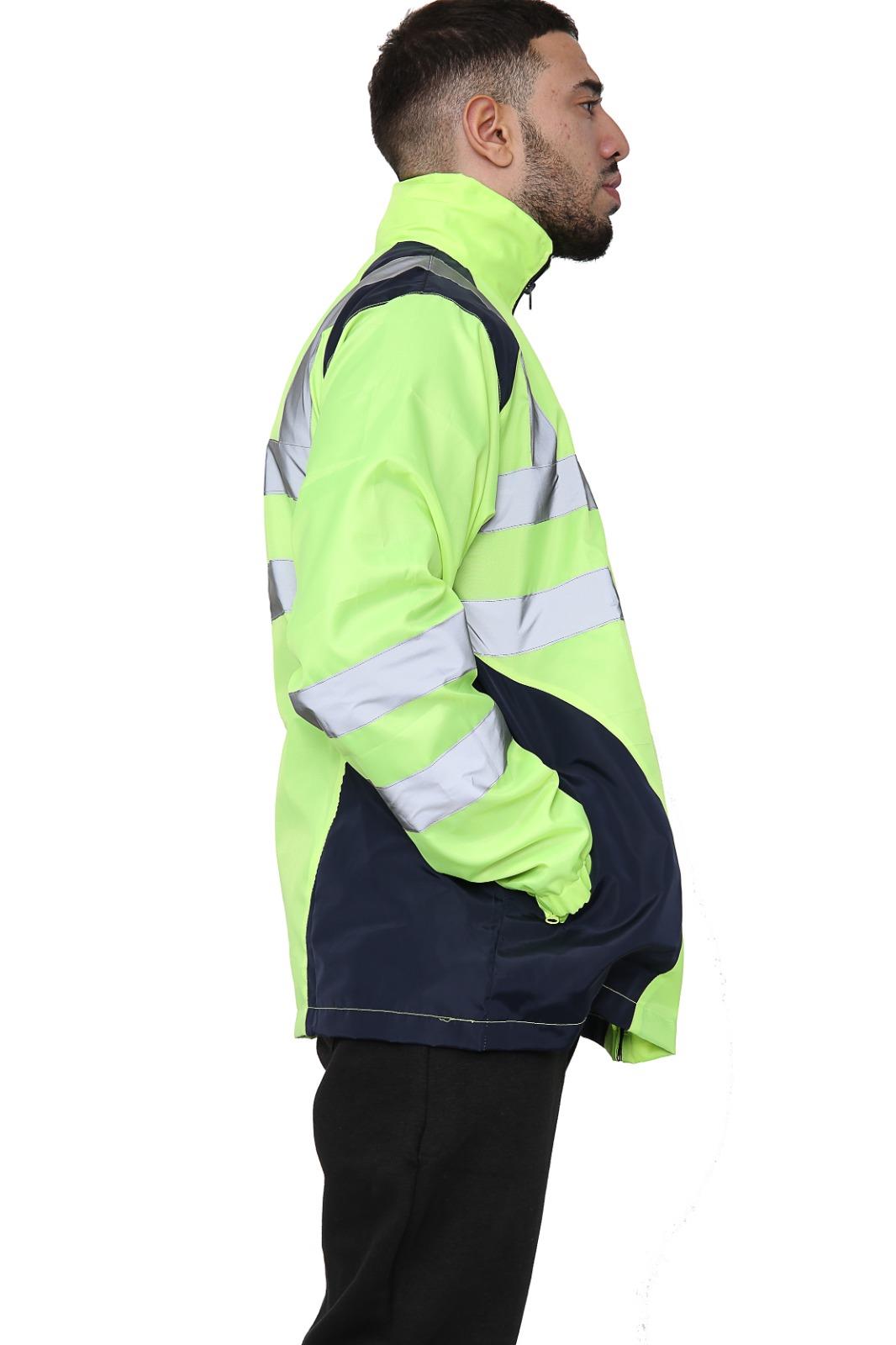 Mens Hi Vis Rain Jacket High Visibility Reflective Waterproof Raincoat Work Wear Product Info: