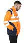 Mens Hi Vis Rain Jacket High Visibility Reflective Waterproof Raincoat Work Wear, Ideal For Safety Work Wear. It Has Soft Lightweight Comfortable Material, Long Sleeve, Hooded, Zip Fastening, Reflective Tape Band Detail Hi Viz Raincoat Waterproof High Visibility Work Wear Rain Jacket Coat Which Is Perfect For Casual Work Sequrity Safety Wear.
