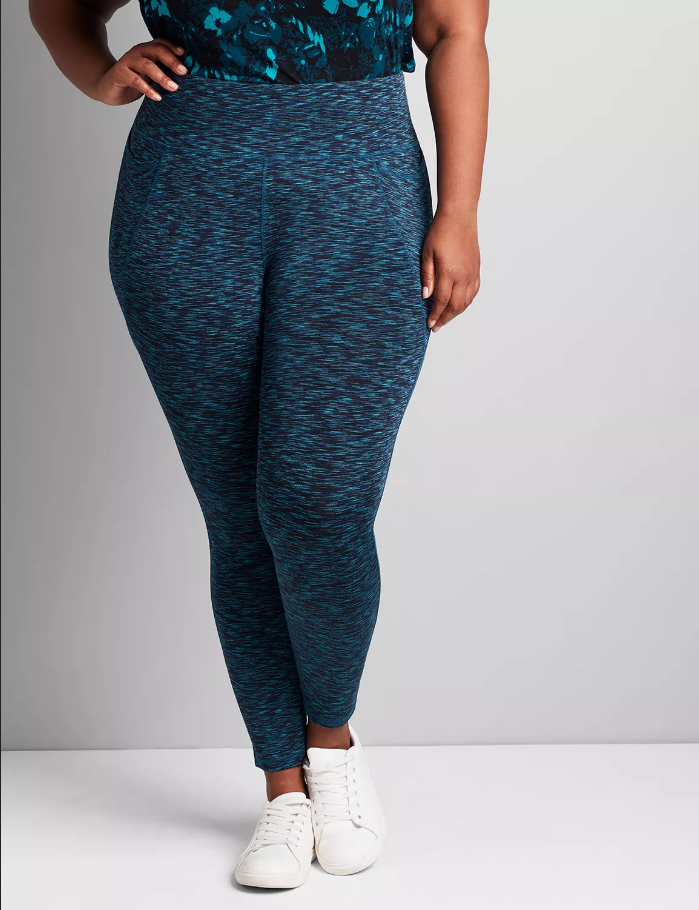 Details: A pair of LIVI 7/8 leggings with a cool spacedye print for your next run (even if it's just for coffee). Crisscross strappy inset at the back of each hem takes this basic style up a notch. Throw on an oversized tee or hoodie and say hello to all-day comfort. RISE: High. 7/8 Power Legging with wider 4" covered elastic waistband for additional support and comfort. Hidden waistband pocket (perfect for a credit card or a key). Streamlined pocket at each thigh. With wicking technology: supportive stretch and fade-resistant, moisture-wicking and quick-drying fabric. Inseam Length approx. : 25.5". Livi Active. Machine Wash.
