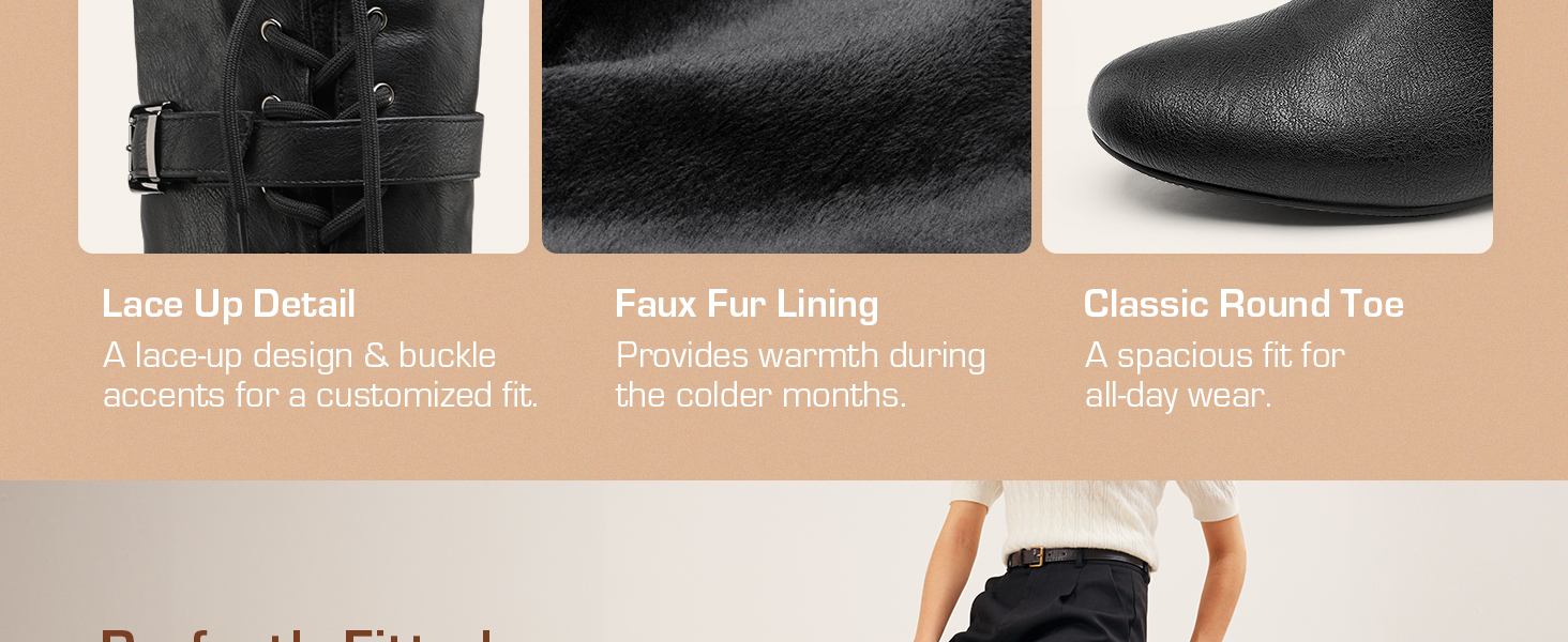 • Faux Fur Lining: Keep legs wrapped up and warm with these women’s over-the-knee boots with a fluffy lining that is soft against the skin.